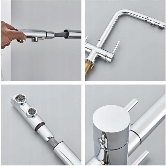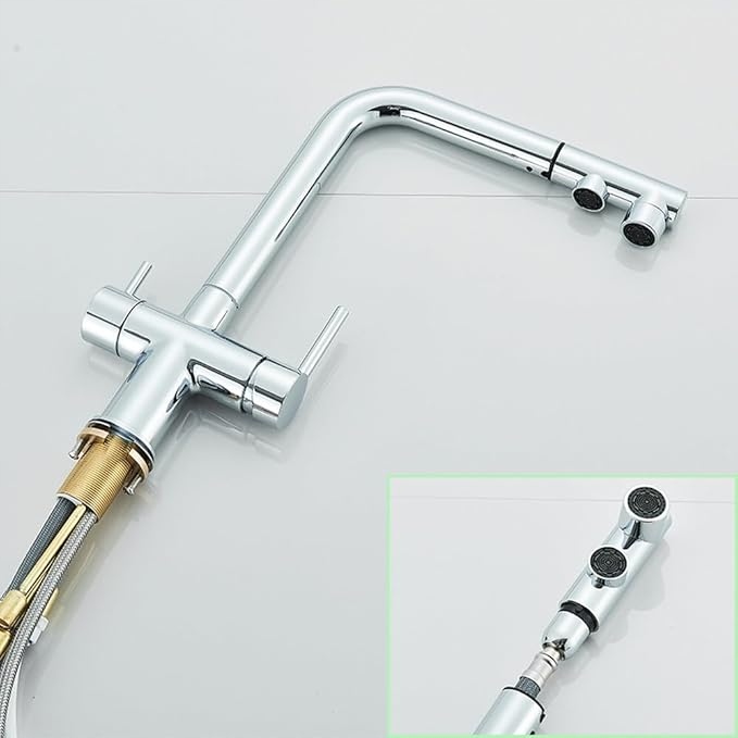 ТРЕХХОДОВОЙ КУХОННЫЙ ФАУТЕР С ВЫДВИЖНЫМ ИЗЛИКОМ ДЛЯ КУХОННОГО ФИЛЬТРА ХРОМ ЛАТУНЬ