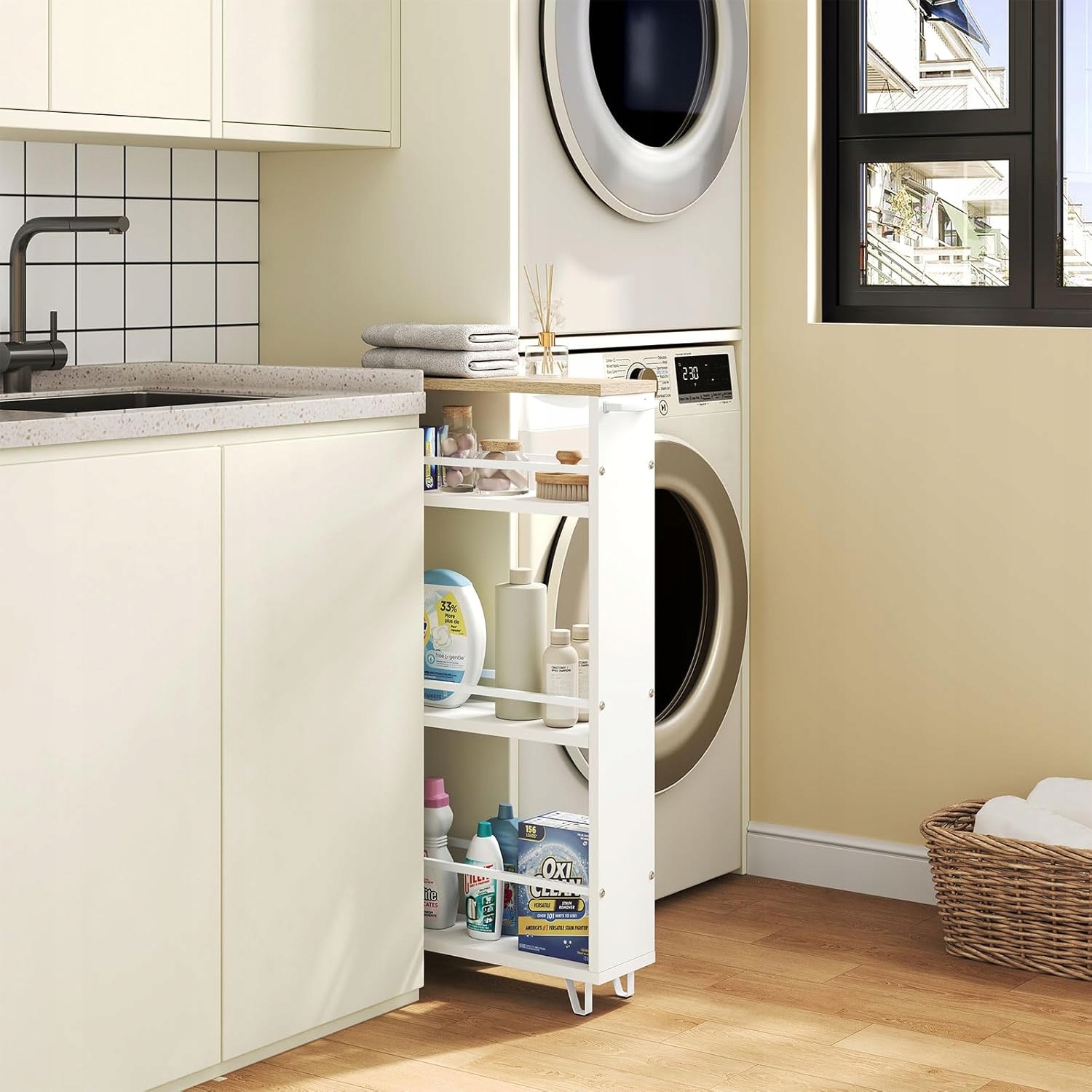 - easy to install: Thanks to instructions and accessories you can quickly assemble a narrow shelf with wheels for storing bottles with bottles with bottles with bottles with bottles spices, cutlery, books, cups, и т.д. Чтобы получить максимальное значение и стабильность, мы рекомендуем поместить его в плотные пространства