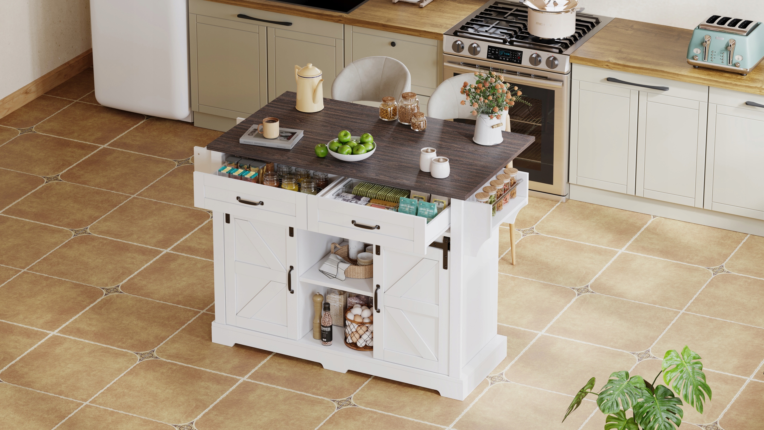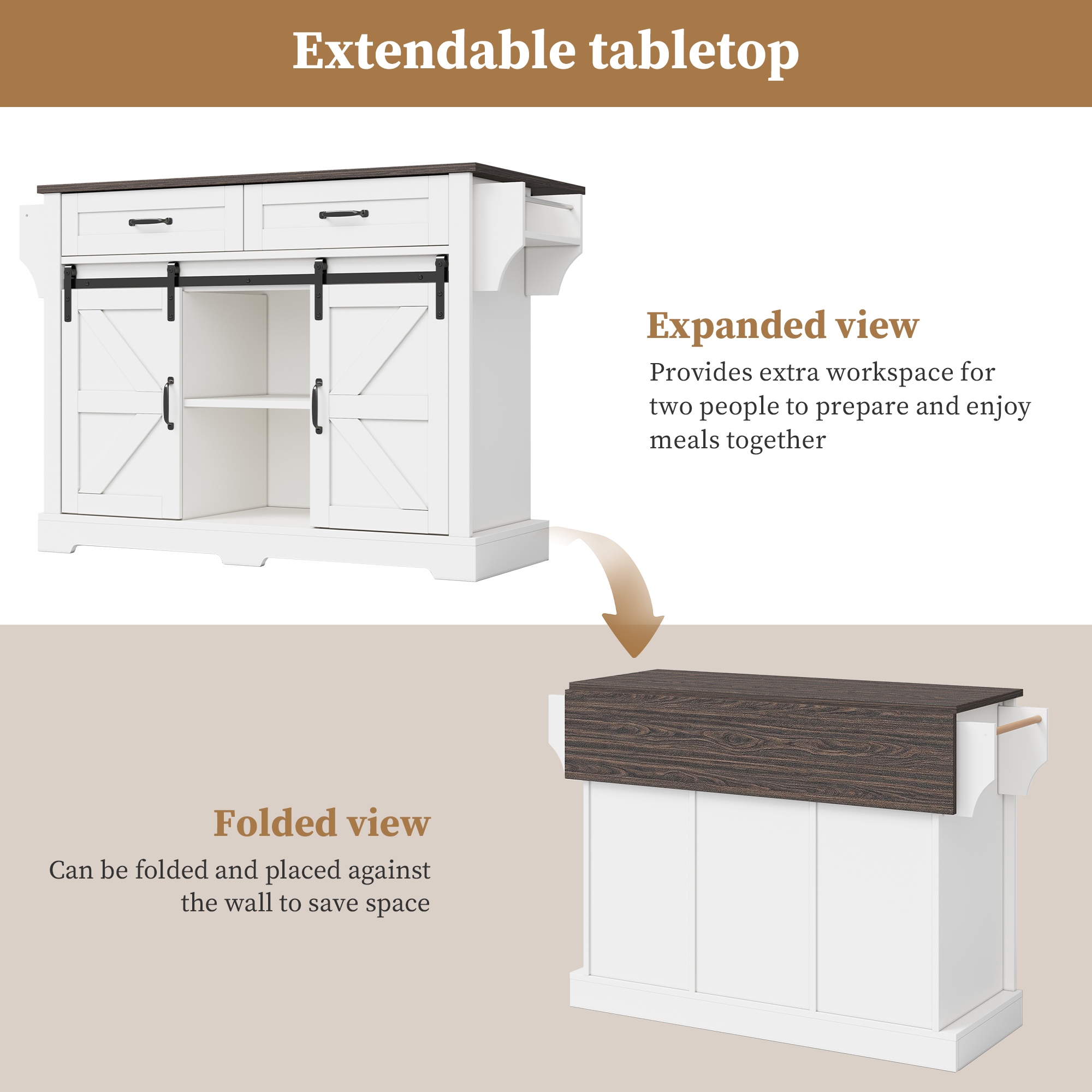 Кухонная тележка со складным верхом и раздвижными дверцами|Мобильный кухонный остров