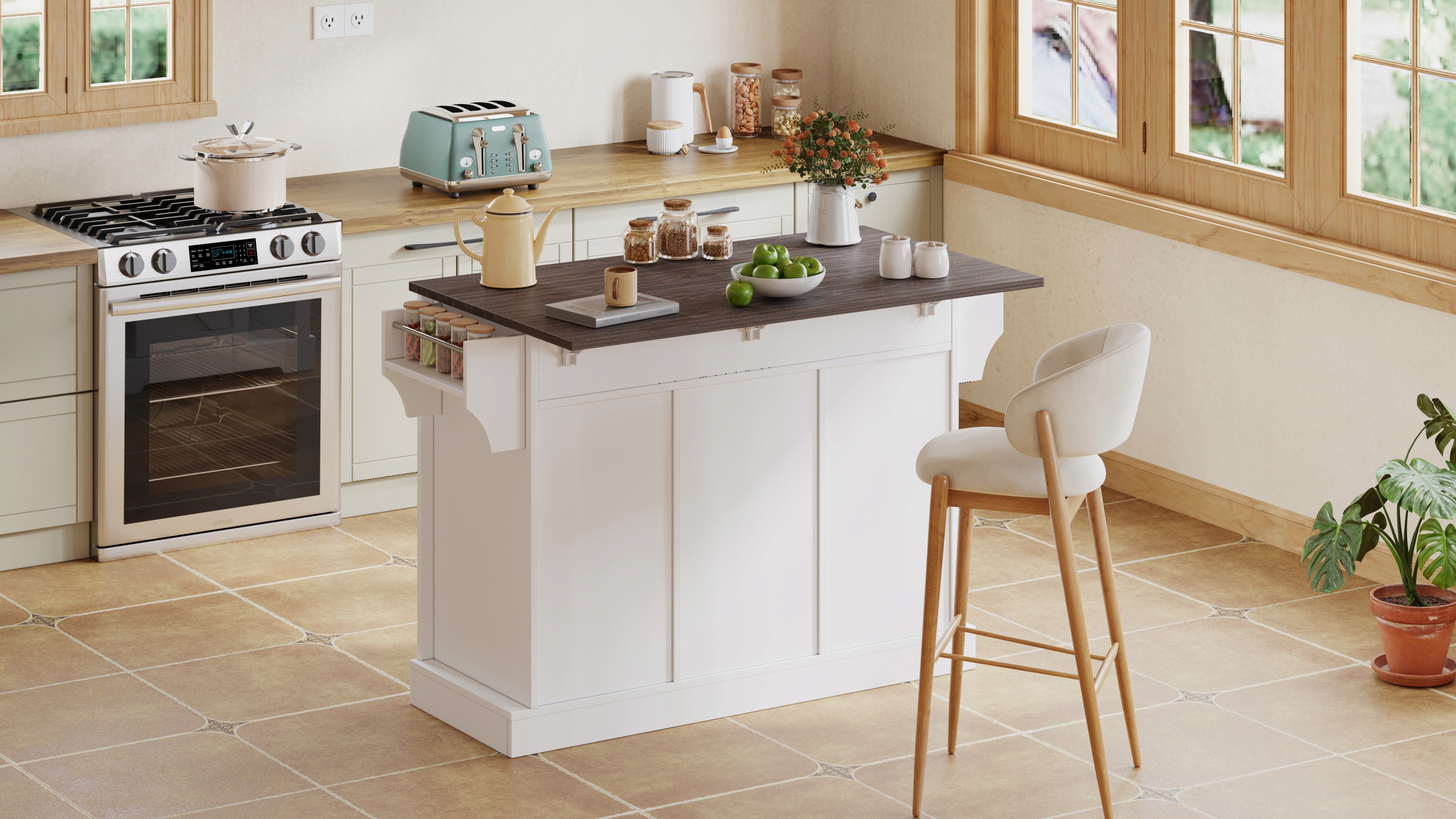 Этот универсальный стол имеет выдвижную поверхность, идеально подходящую для двоих, чтобы с комфортом готовить еду или ужинать вместе. Когда он не нужен, он компактно складывается у стены для экономии места — идеально подходит для кухонь с ограниченной площадью.