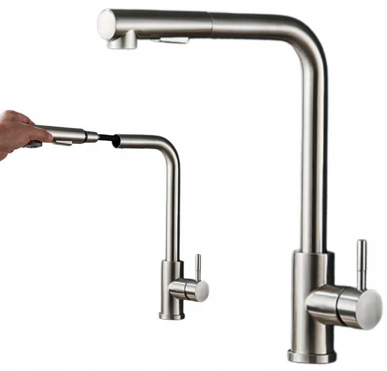 Кухонный смеситель, раковина, ВЫДВИЖНОЙ излив, НИКЕЛЬ