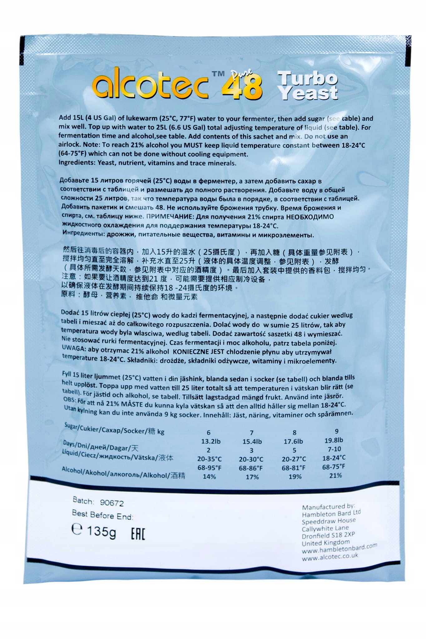 КУХОРНІ ДРІЖДЖІ TURBO ALCOTEC 48 PURE BIMBER