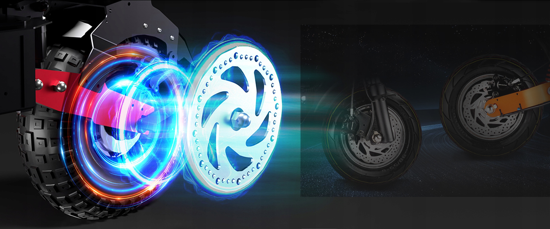 В KuKirin G2 Master используются двухдисковые передний и задний дисковые тормоза. Такая конструкция позволяет водителю более комфортно тормозить и снижать скорость, сохраняя при этом устойчивость и управляемость электросамоката; По сравнению с традиционными методами торможения дисковые тормоза имеют большую поверхность трения, лучше рассеивают тепло и, следовательно, более долговечны.
