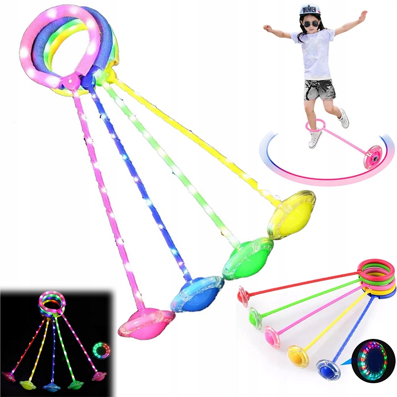 Уникальный вариант скакалки не только со светящимся кольцом, но и с повязкой на голову! Колесо со светодиодами. Чем быстрее вы крутите игрушку, тем ярче она светится. Дополнительно на ручке имеется кнопка, которая включает светодиоды на оголовье после вынимания штыря из-под сердца.