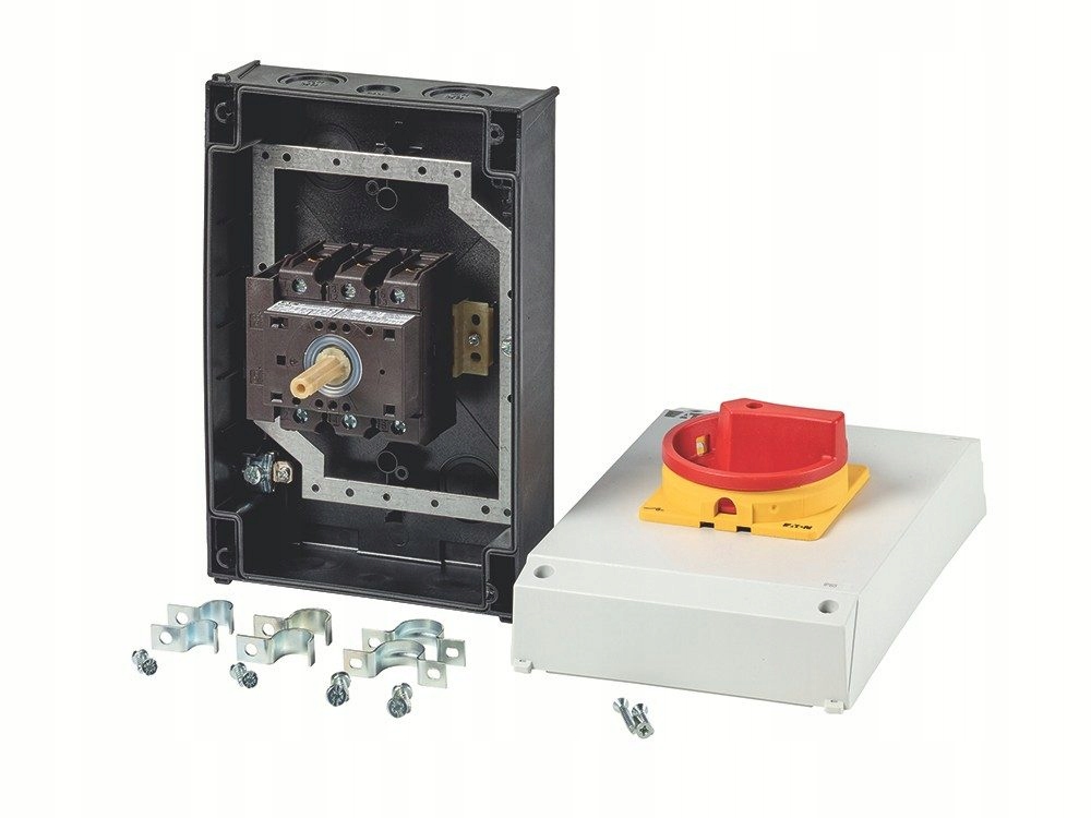 Выключатели П1 до 32 А, П3 до 100 А, П5 до 315 А имеют прочную конструкцию. Ручной привод работает в режиме прямых контактных контактов. При выключении контакты принудительно размыкаются. Помимо использования в качестве главных выключателей с функцией аварийного останова или без нее, переключатели P также используются в качестве переключателей ВКЛ-ВЫКЛ. а также в качестве выключателей для технического обслуживания и ремонта или предохранительных выключателей.