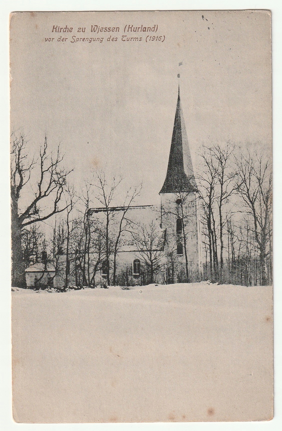 КУРЛАНДИЯ. Kirche zu Wjessen (Курляндия) vor der Sprengung des Turms (1916), изд. Лихтдрук фон Пауль Кнабхен, Цёблиц и Са, до 1916 года; Ч/Б, небольшие пятна, в остальном очень хорошее состояние, есть тираж.