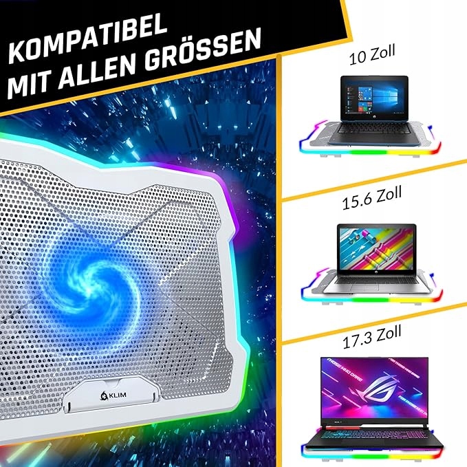Кулер для ноутбука KLIM Ultimate White + RGB – от 11 до 17 дюймов + охлаждение ноутбука + новинка 2024 года + USB-вентилятор + стабильный и тихий + совместимый с Mac XboxOne PS5 PS4