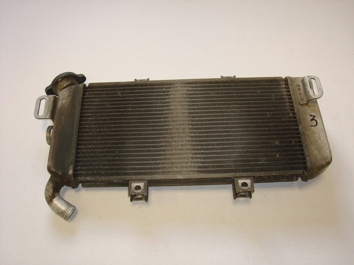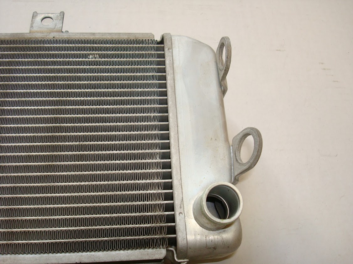 РАДИАТОР №3- , НЕБОЛЬШАЯ вмятина сбоку от впускного патрубка, местами помяты ребра, следов протечек нет