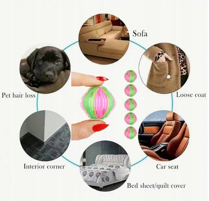 ➤ ➤ ➤ Упаковка: 6 x ловец для волос для стиральной машины, шариков для белья, многоразового, мытья шариков, для стиральной машины, для удаления волос животных, Kłaczków, собачьи волосы