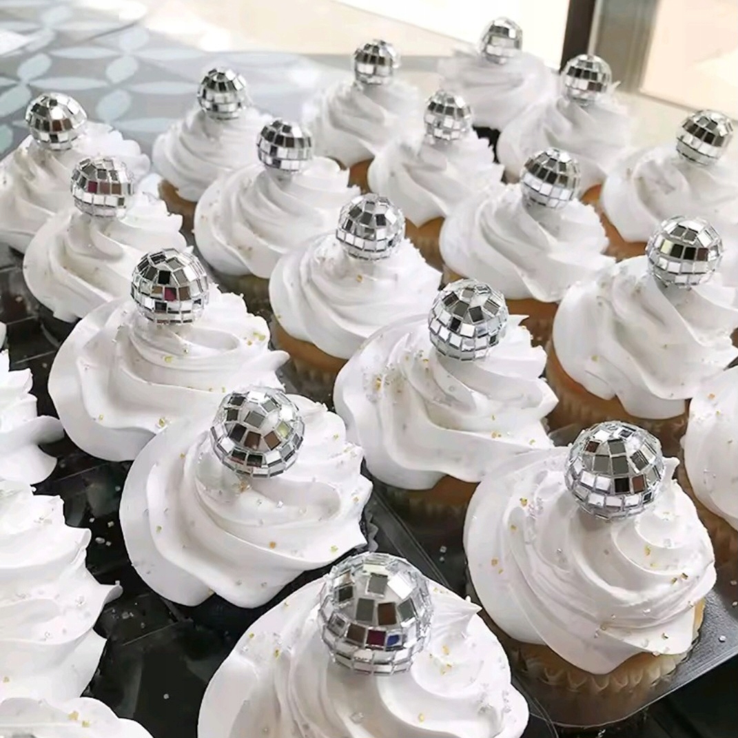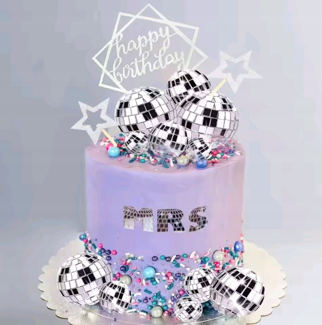 Шары топпер на пиковых серебряных диско -шариках для торта 626