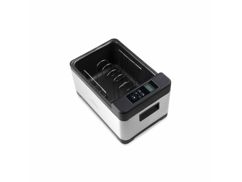 В этом профессиональном устройстве су-вид емкостью 8,5 литров вода в резервуаре для воды нагревается постепенно. Пища не пригорает и не расслаивается, поскольку вода не нагревается выше 99°C. И температуру, и время можно установить отдельно. Более того, это устройство су-вид имеет точность до 0,3°C. Благодаря равномерному потоку воды вы можете приготовить идеальный продукт, сохранив при этом вкус, текстуру и питательные вещества. ЖК-дисплей цифровой, а панель управления проста в использовании благодаря сенсорным клавишам. Устройство су-вид также оснащено термозащитой, а шнур питания отсоединяется.