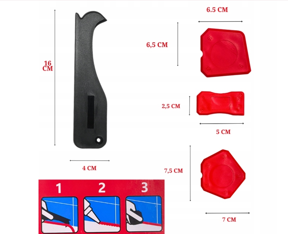 - Комплектация: 3 лопаточки разной формы для точного нанесения силикона и идеальной отделки швов.