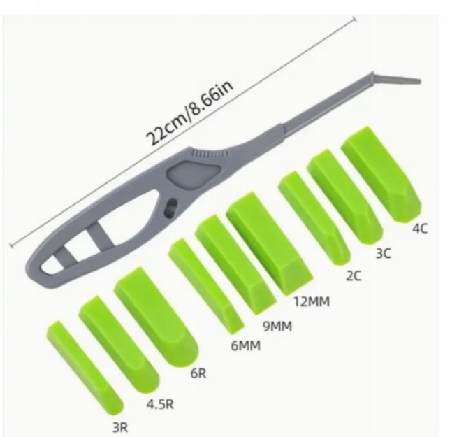 ⭐ Содержит 9 различных размеров и форм (R3, R4,5 R6, прямые) 6, прямая 9, прямая 12, трапециевидная 2с, трапециевидная 3с и трапециевидная 4в).Шпатель длиной 22 смимеет удобную ручку, которая облегчает работу даже в труднодоступных местах и снижает утомляемость рук.