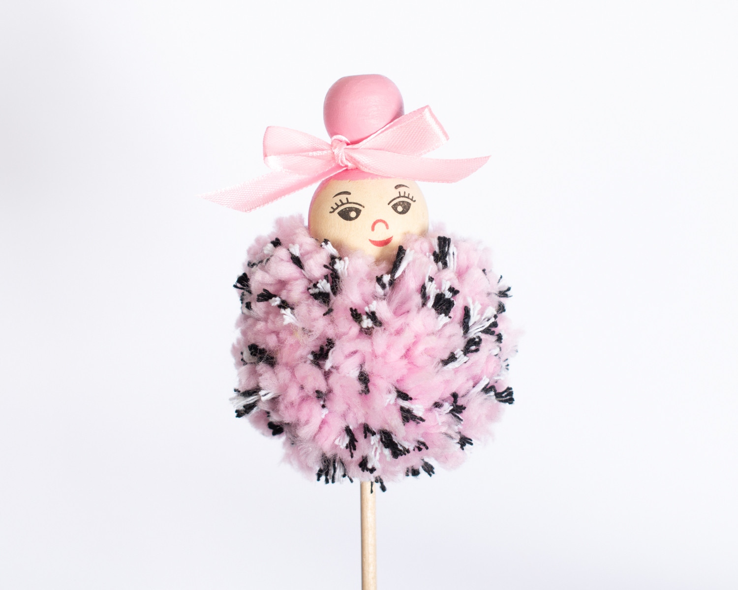 Мы обернули вместе розовую пряжу и полосатый кусок веревки.