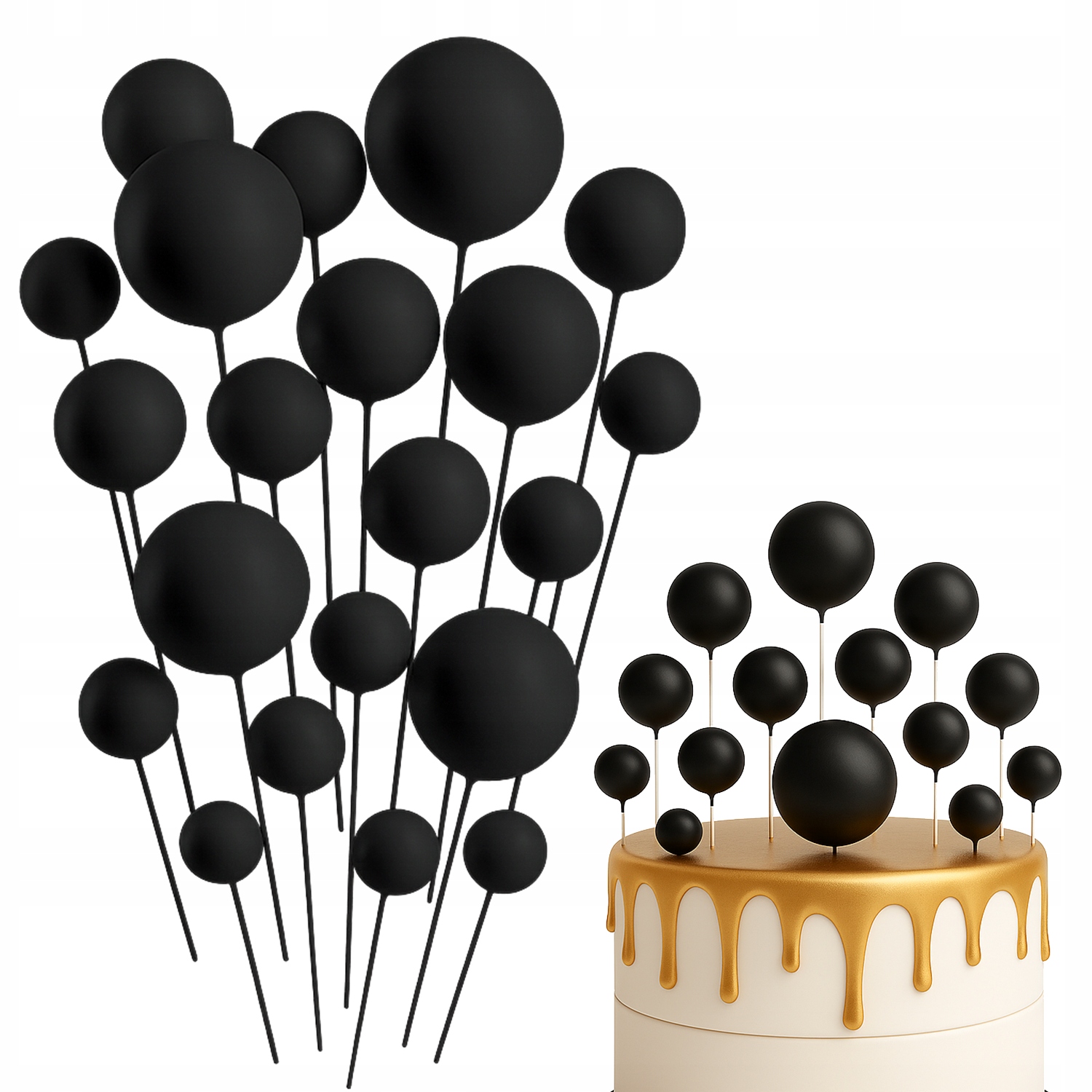 ТОППЕР ШАРИКИ ДЛЯ УКРАШЕНИЯ ТОРТА ЧЕРНЫЕ ШАРИКИ НА СПИКЕ 20 шт.