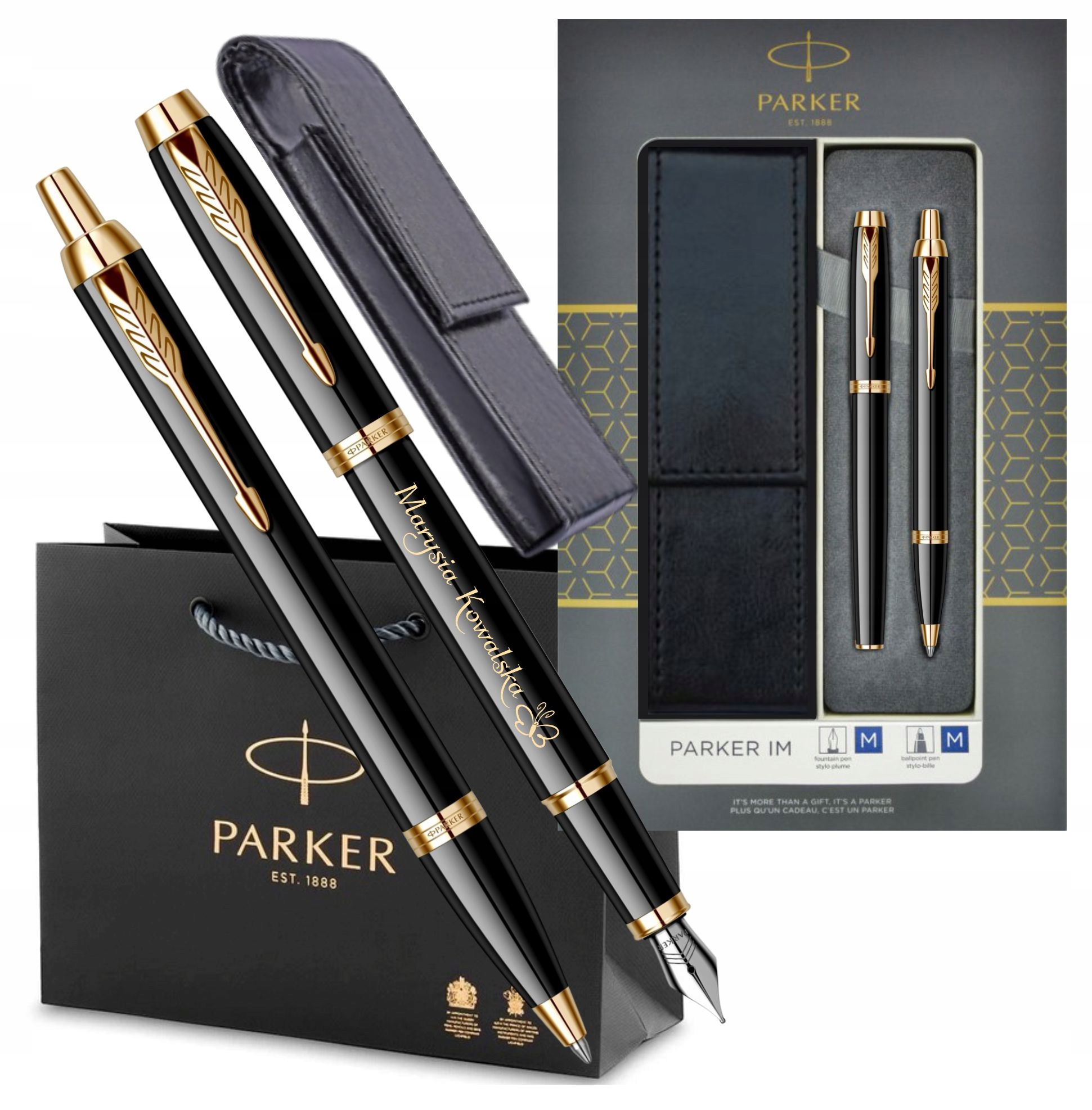 ПОЗОЛОЧЕННАЯ ШАРИКОВАЯ И ПЕРЬЕВАЯ РУЧКА PARKER IM GT С ГРАВИРОВКОЙ В КОРОБКЕ С КОРОБКОЙ