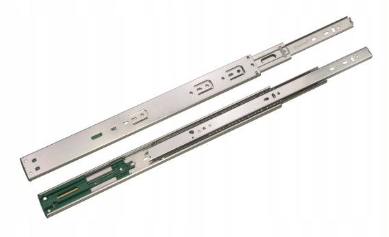 Шариковые направляющие полного выдвижения с системой плавного закрытия — еще один инновационный продукт от Sevroll. Здесь использована компактная конструкция высотой 45 мм, сохраняющая при этом высокую несущую способность. Конструкция изготовлена из устойчивого к деформациям металла. Система плавного закрывания реализована механизмом с двойной пружиной и латунным цилиндром-амортизатором. Направляющая имеет 5 подшипниковых сегментов, каждый из которых содержит по 5 шариков. Все это дополняется лучшими препаратами, используемыми для смазки и ухода за направляющими. Широкий диапазон длин направляющих (250-600 мм) делает их отличным выбором для кухонной и офисной мебели, позволяя создавать вместительные и долговечные ящики.