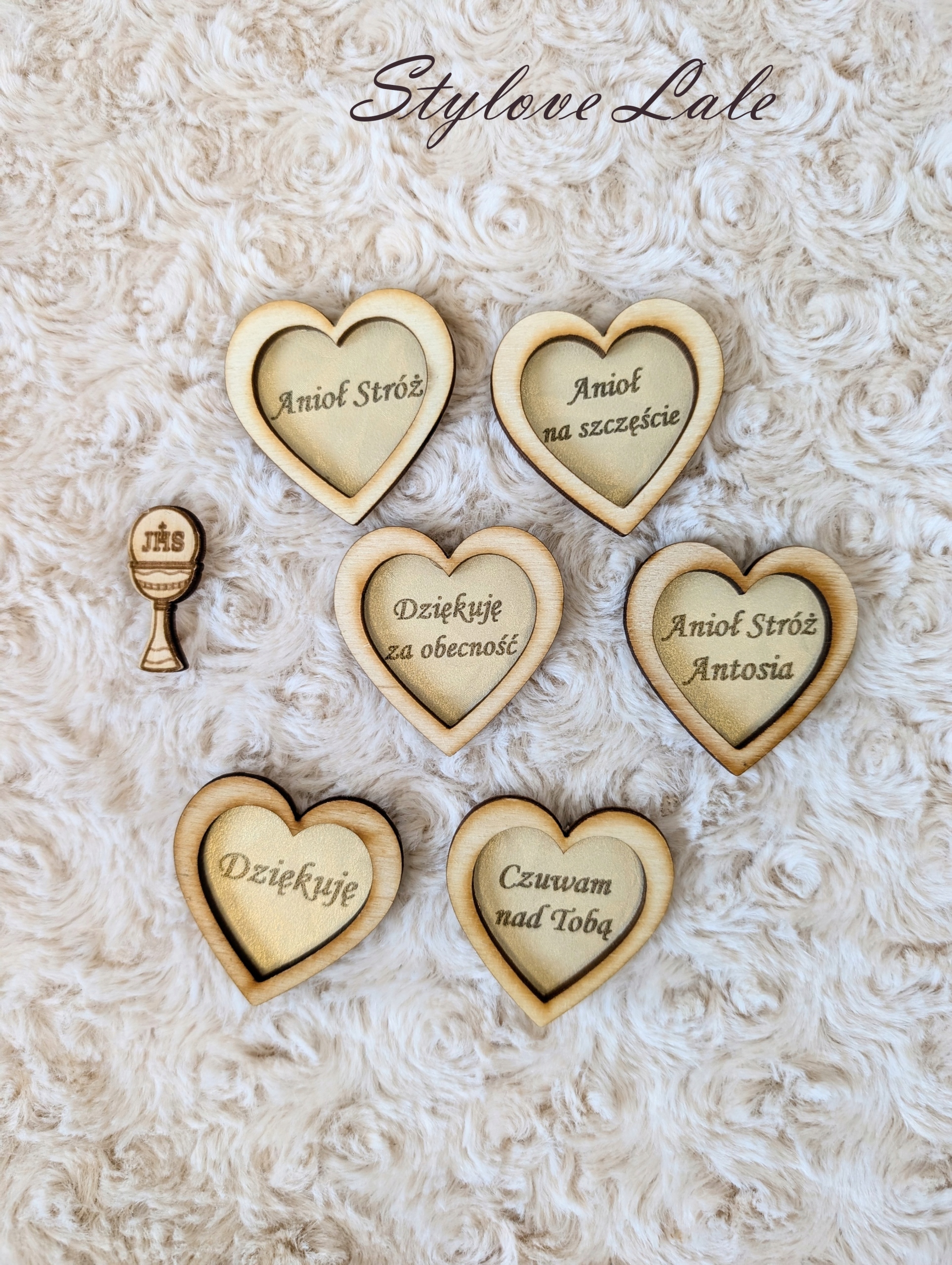 - В сердечке напечатана любая надпись до 3 слов (например, «Ангел-хранитель Антосии», «Спасибо, что пришел», «Я слежу за тобой»)