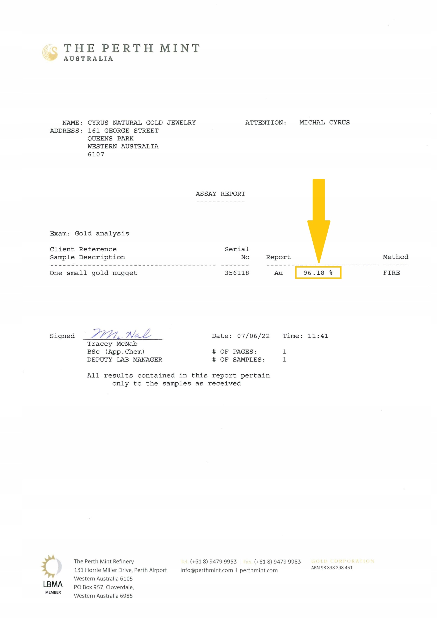 Климат этого уникального континента благоприятствует человеческому творчеству, развитию страсти и, прежде всего, обеспечивает самое главное - наггетсы. Cyrus Natural Gold — самородок из Западной Австралии. Они выше среднего богаты золотом, его содержание составляет от 90% до 97%. Самородки добываются таким образом, который никак не влияет на природную среду. Это чрезвычайно важный аспект для нашего бренда. Мы считаем, что уважение и забота об окружающей среде окупаются. Самородки добываются у частных золотодобытчиков, которые покидают территорию в том же состоянии, что и до поисков.