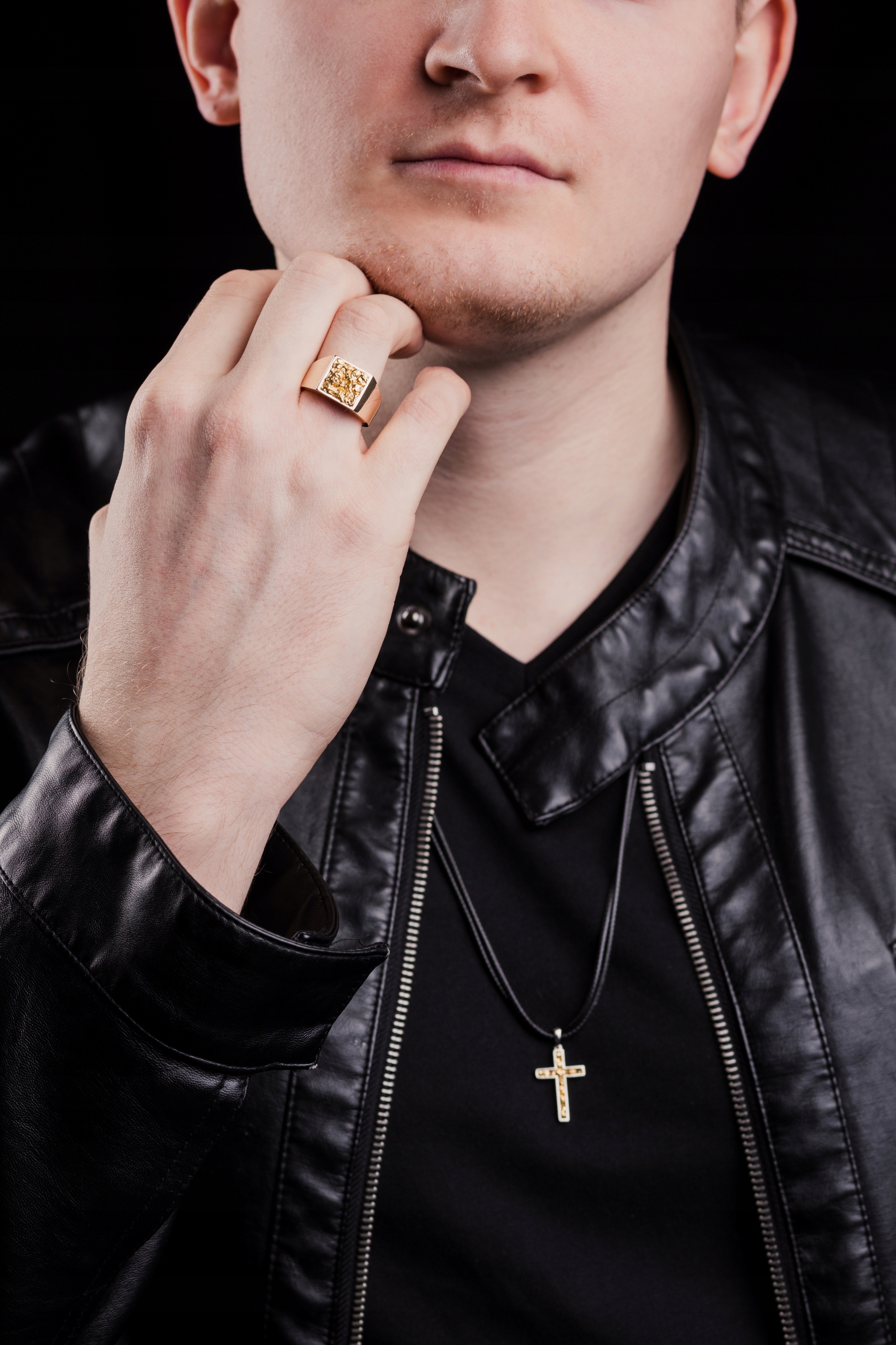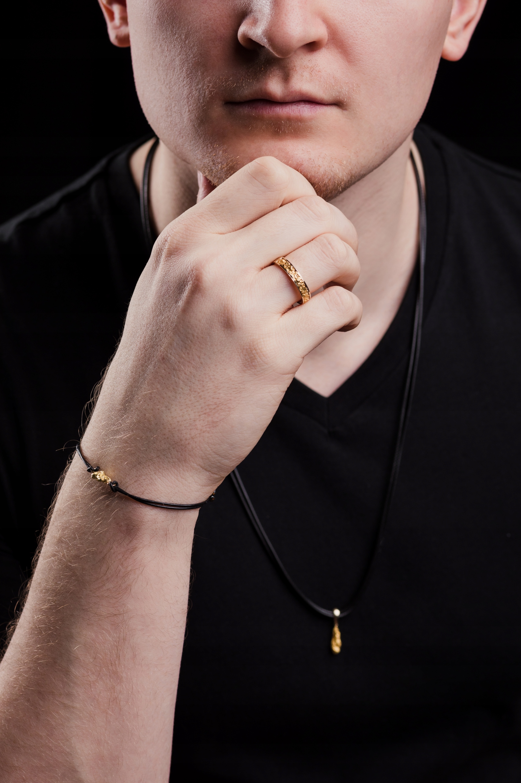 Очень мужской и уникальный кулон. Проект создан с заботой о мужчинах. Сочетание ремешка, золота и большого натурального самородка создает уникальную композицию. Оно будет красиво смотреться на каждом мужчине.