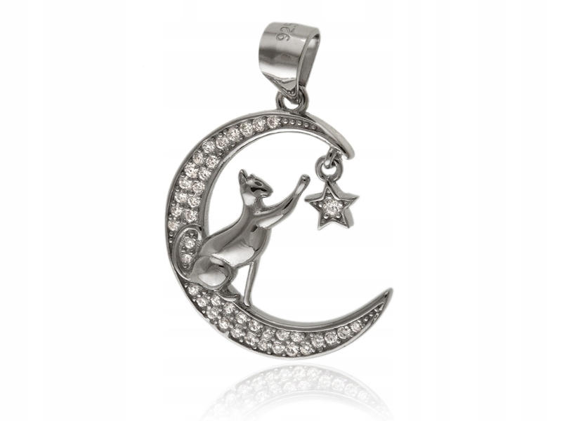 Серебряный кулон Кот на Луне w0453 - 2,1г.