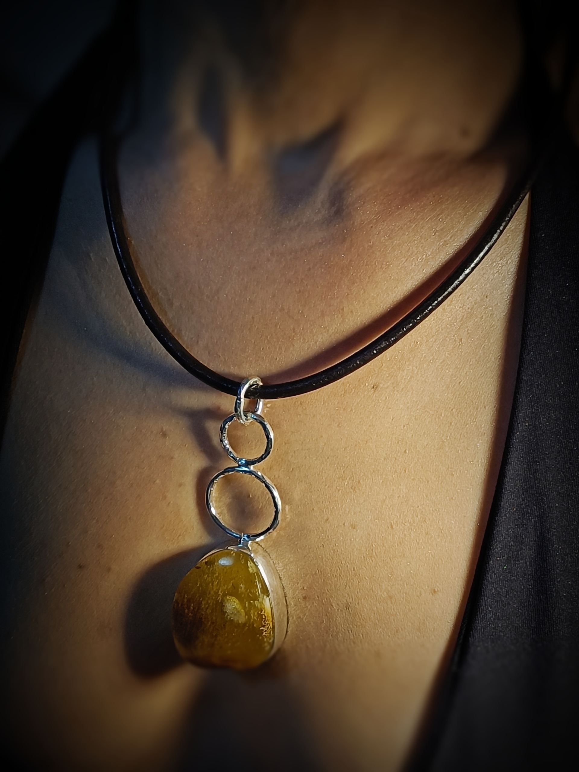 Кулон из натурального балтийского янтаря и серебра 925 пробы.