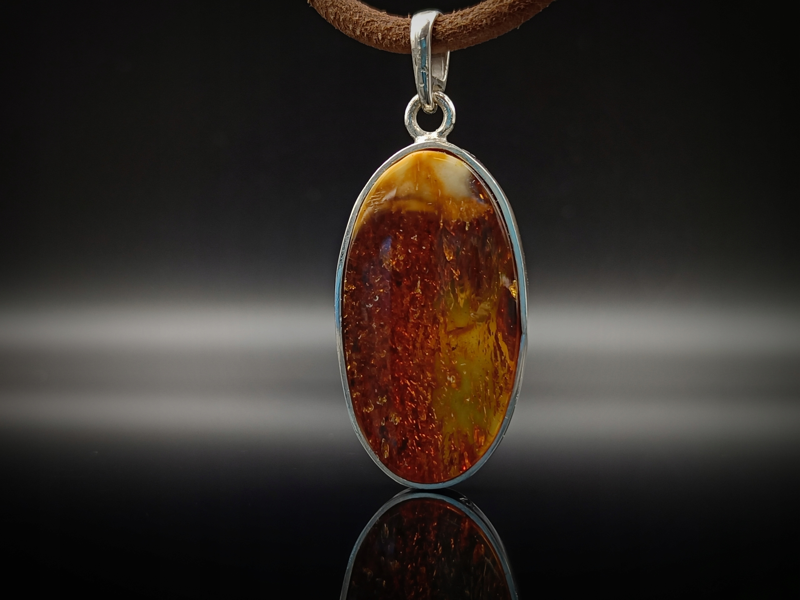 Кулон двусторонний с овальным янтарем.
