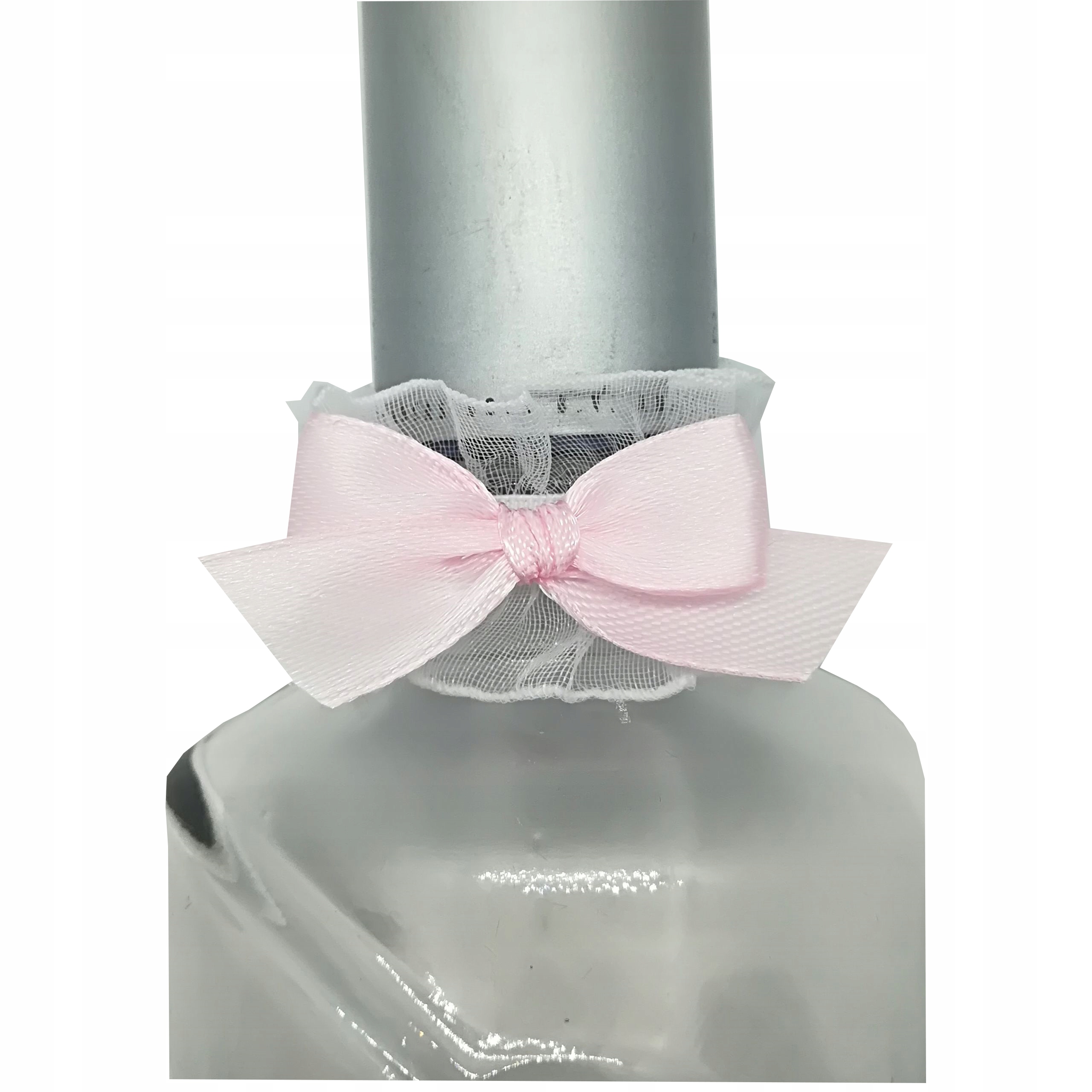 Подвязка выполнена из каучукового шнурка. К нему прикреплен бантик из ленты шириной 1 см.