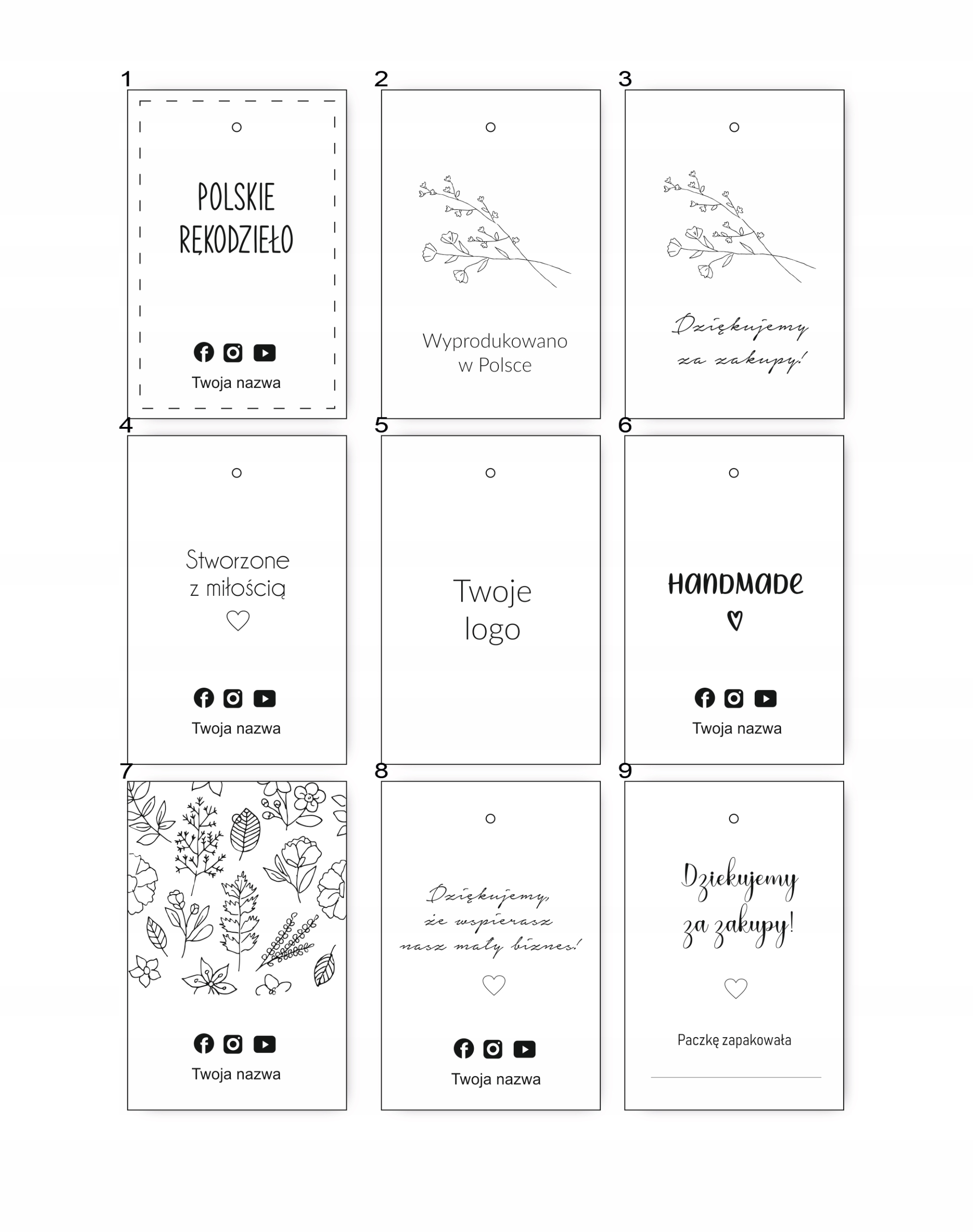 Этикетки напечатаны на белой бумаге плотностью 300 г. В подвесках имеются отверстия для продевания веревочки.