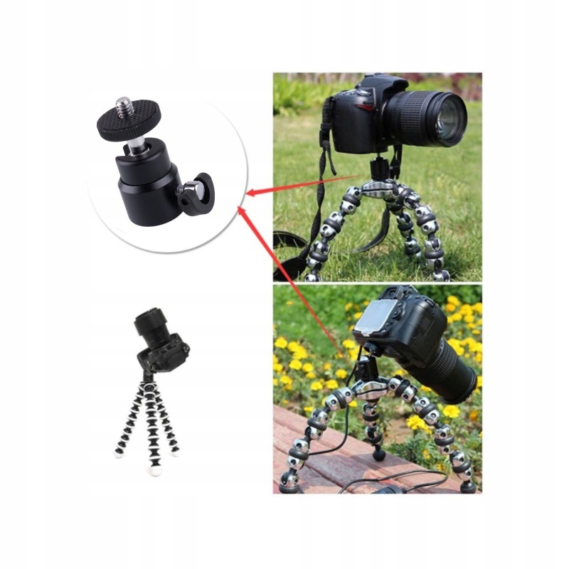Благодаря этому мы можем разместить спортивную камеру, небольшой фотоаппарат или другие фотоаксессуары в любом порядке. Голова фиксируется в выбранном положении с помощью боковой ручки.