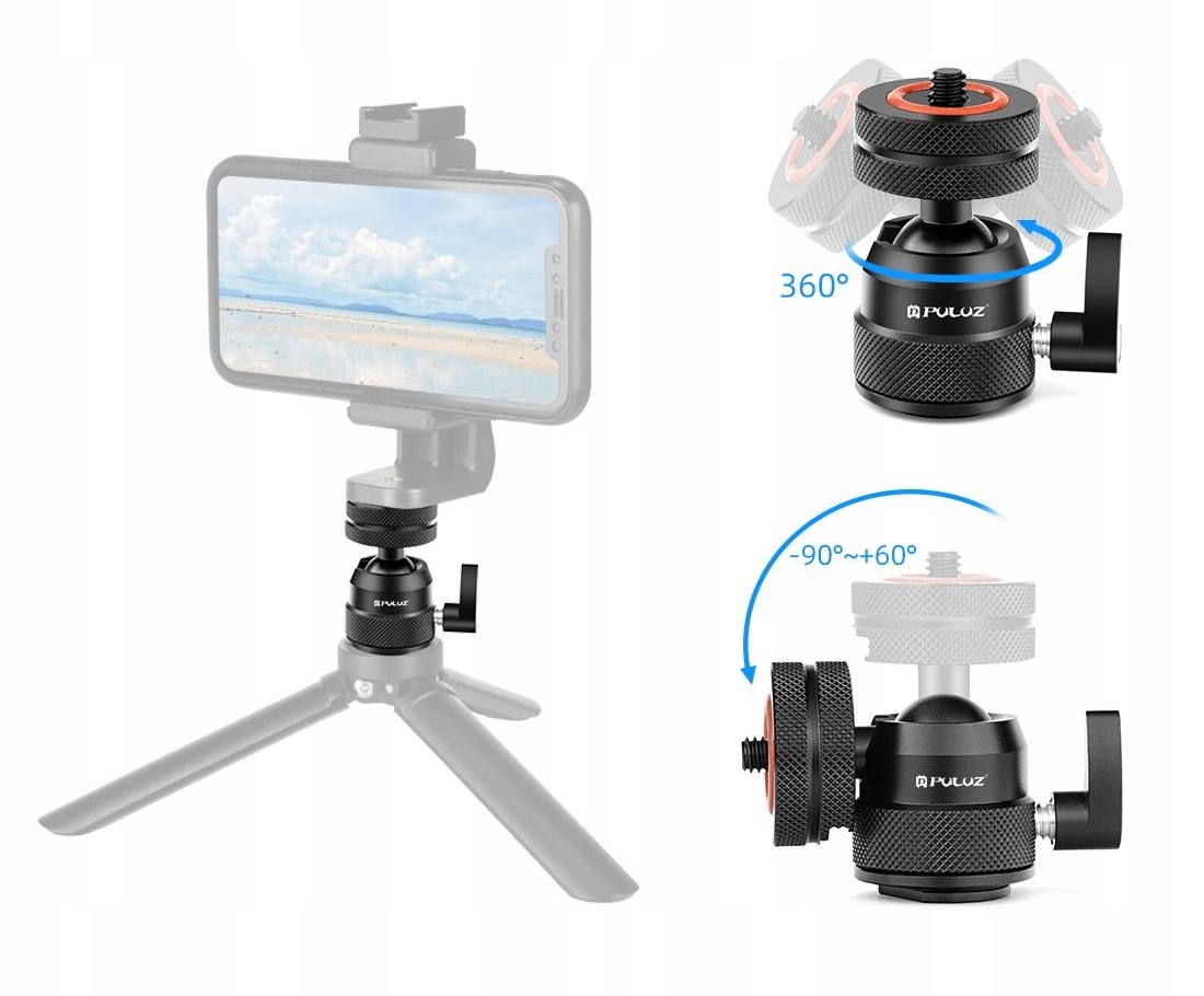 Шаровая головка для камеры, резьба для 3D-камеры 1/4 дюйма, 2 ножки ISO до 3 кг Puluz