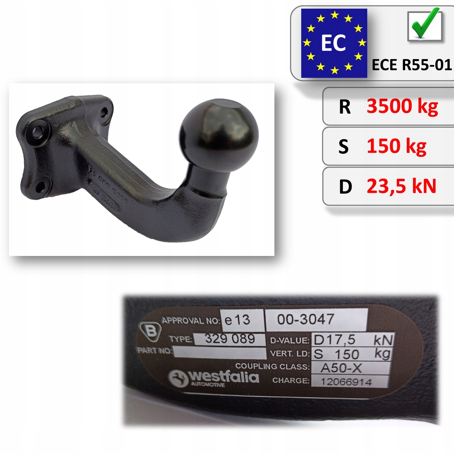 Расстояние до центра расстояние от шара до монтажной пластины составляет 150 мм и это значительно больше, чем у стандартных крючков с фланцевым шаром.
