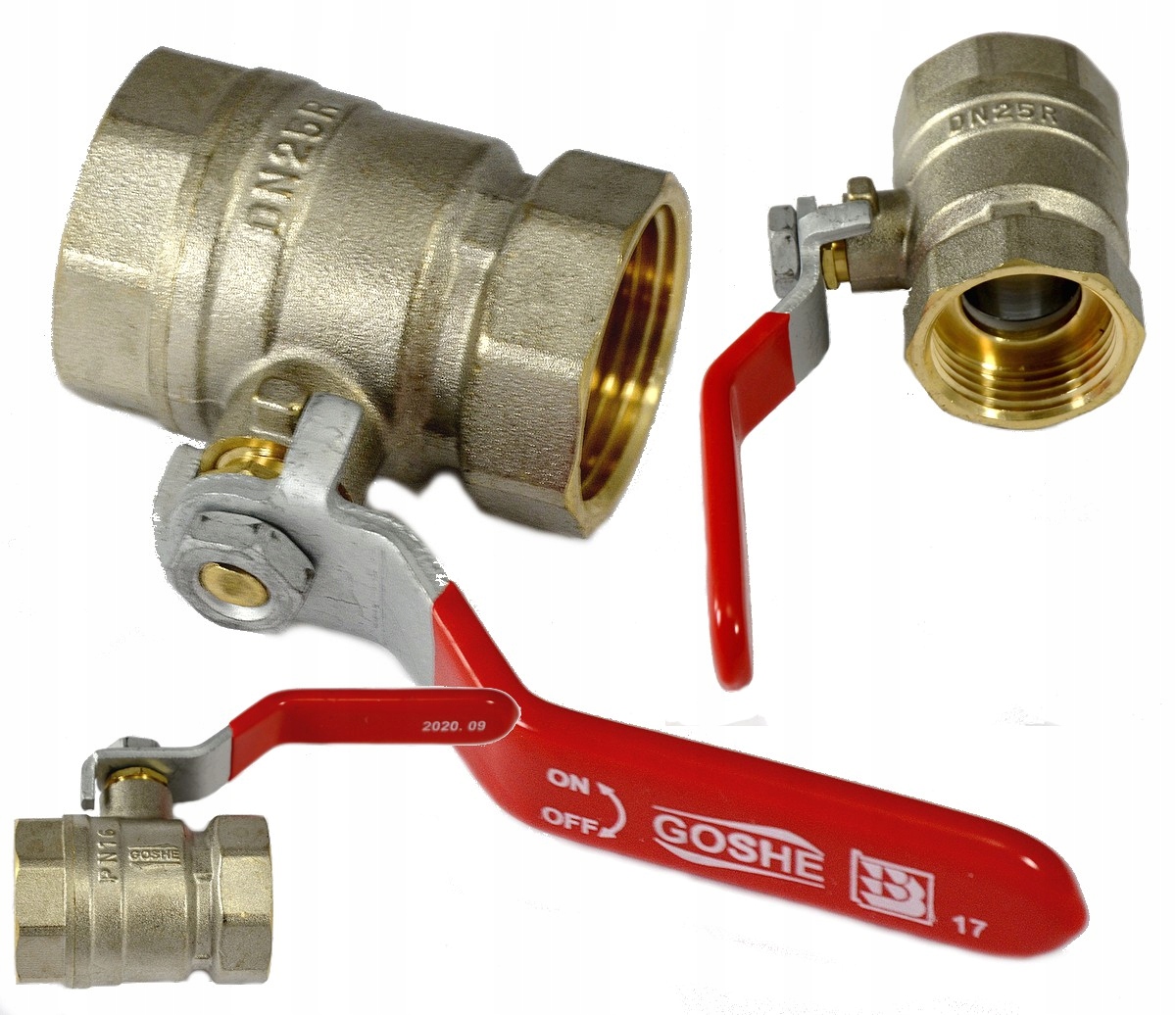 Клапан ГОШЕ шаровой латунный диаметром DN25 (1 дюйм) с ручкой WW РЕЗЬБЫ