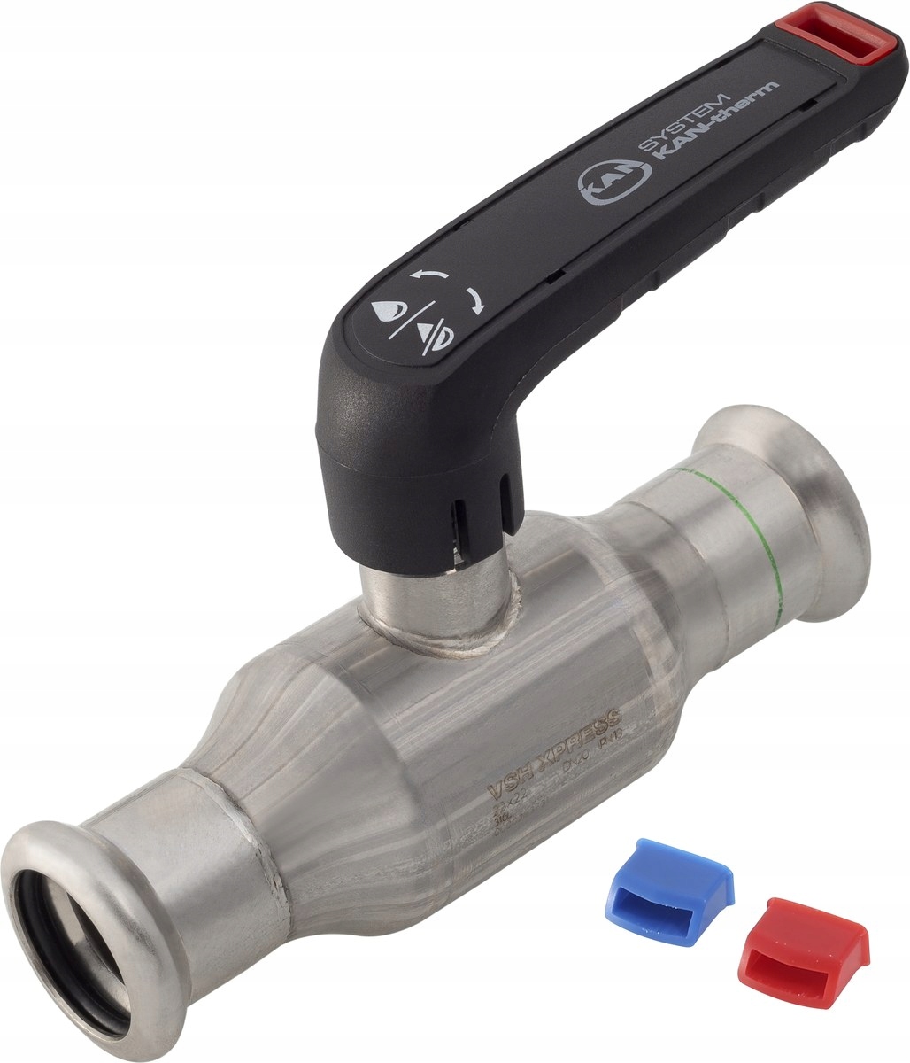Шаровой кран Inox из нержавеющей стали 1.4404, диапазон диаметров 15–54, оснащен уплотнительными кольцами из EPDM. для пресс-соединений с функцией контроля утечки LBP. Рычаг оснащен сменными цветными вставками (красными или синими) для идентификации установки. Рабочие параметры: Trob = -35 oC - +135 oC, Prob = 16 бар
