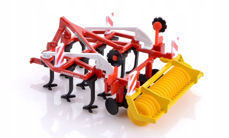 Модель Synkro от известной австрийской компании Pöttinger – одно из самых современных сельскохозяйственных устройств на рынке. Оригинальный культиватор шириной 3 метра с металлической рамой оснащен зубьями и вращающимся прикатывающим валом. Окрашенная в выразительные цвета модель легко устанавливается на тракторы SIKU в масштабе 1:32.