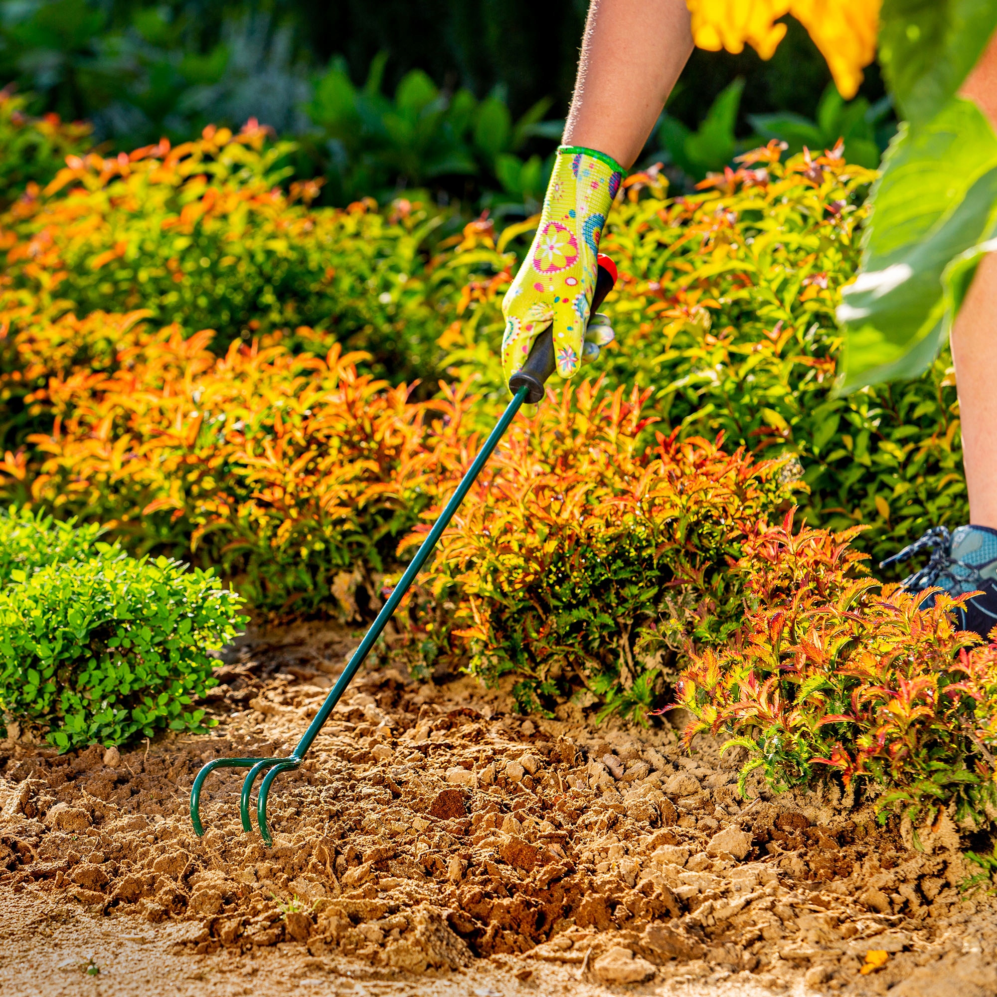 Благодаря рыхлителю также можно аэрировать, что гарантирует подходящие условия для роста растений. Три зубца, которыми оснащено изделие, обеспечивают наилучшую обработку как легких, так и каменистых почв, требующих более интенсивной работы.