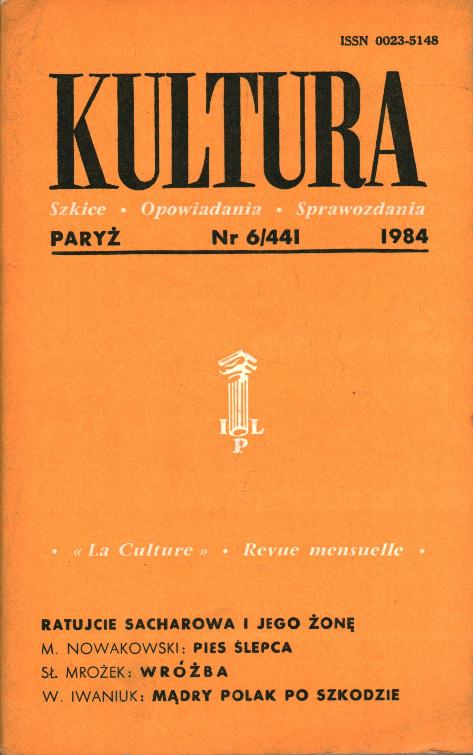 KULTURA PARYSKA NR 6/441 1984 ROK SZKICE OPOWIADANIA SPRAWOZDANIA
