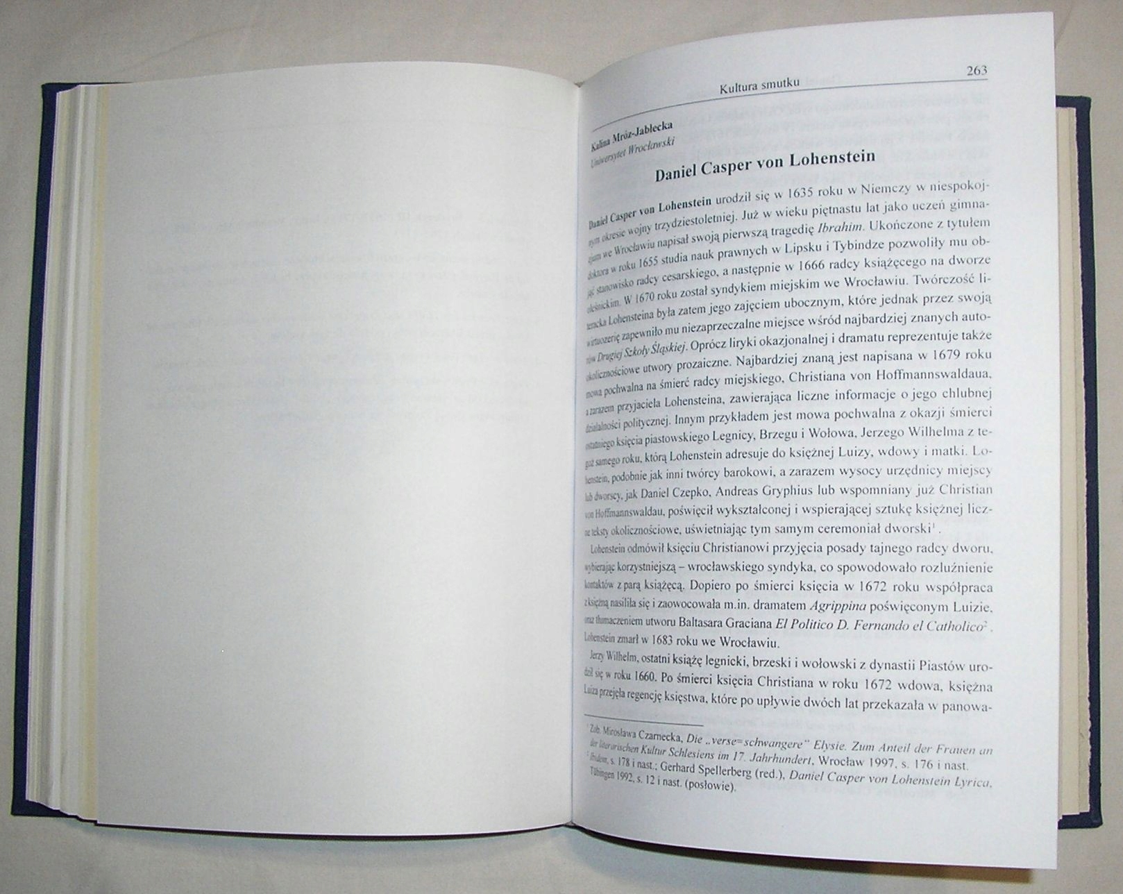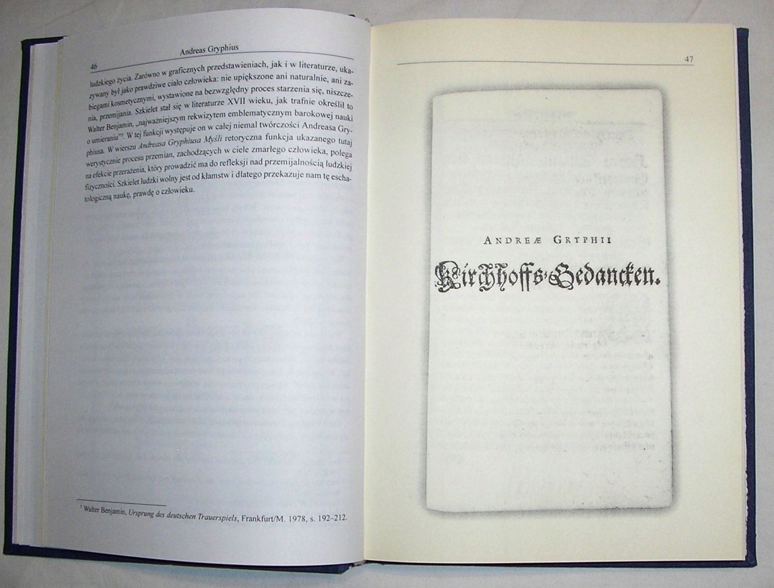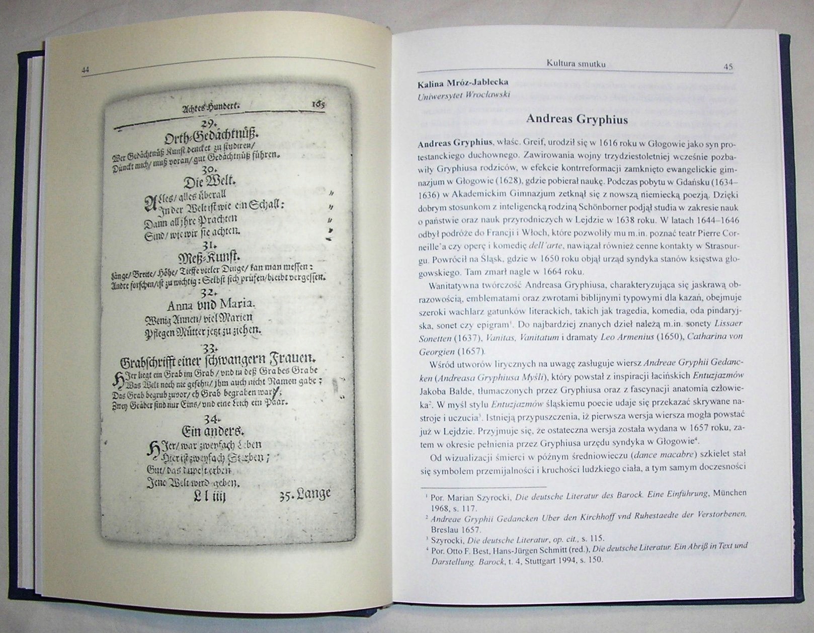 < б>Польский. Помимо похоронных текстов из Отдела старинных гравюр Университетской библиотеки, авторами которых, в частности, являются Андреас Грифиус, Даниэль Каспер фон Лоэнштейн, Мартин Опиц, научные статьи, отражающие их культурный и социологический контекст и мировоззрение.