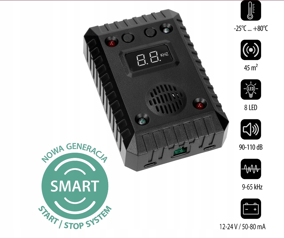 - экологический, без запаха и не -инвазивные - благодаря использованию ультразвуковых и легких сигналов не оставляет неприятных запахов или других следов. Репеллер не влияет на работу двигателя и вождение каким -либо образом, это также практически неразборчиво