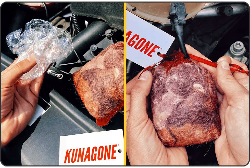 - Кунагоне — отличная альтернатива аэрозольным репеллентам, которые ужасно пахнут и могут проникать через покрытия, например подкапотное пространство и даже проникают в салон.