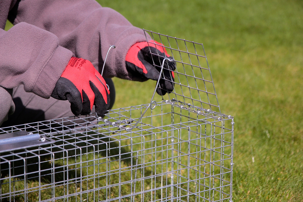 Вредитель, пытаясь снять приманку, активирует защелку, закрывая ловушку.