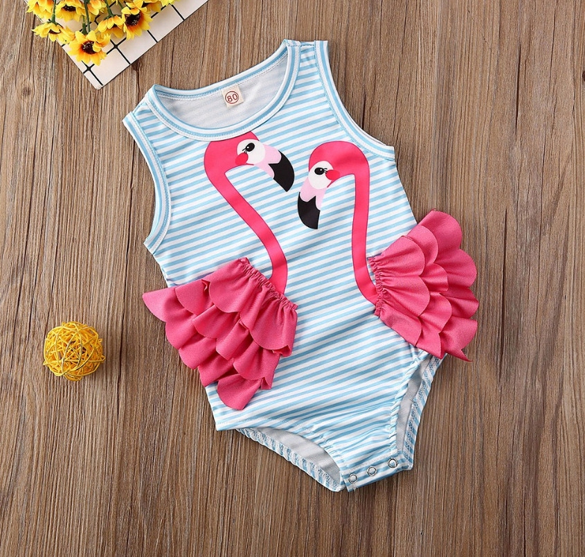 Эффектный наряд для маленькой принцессы с красивым украшением в виде фламинго и розовыми рюшами.