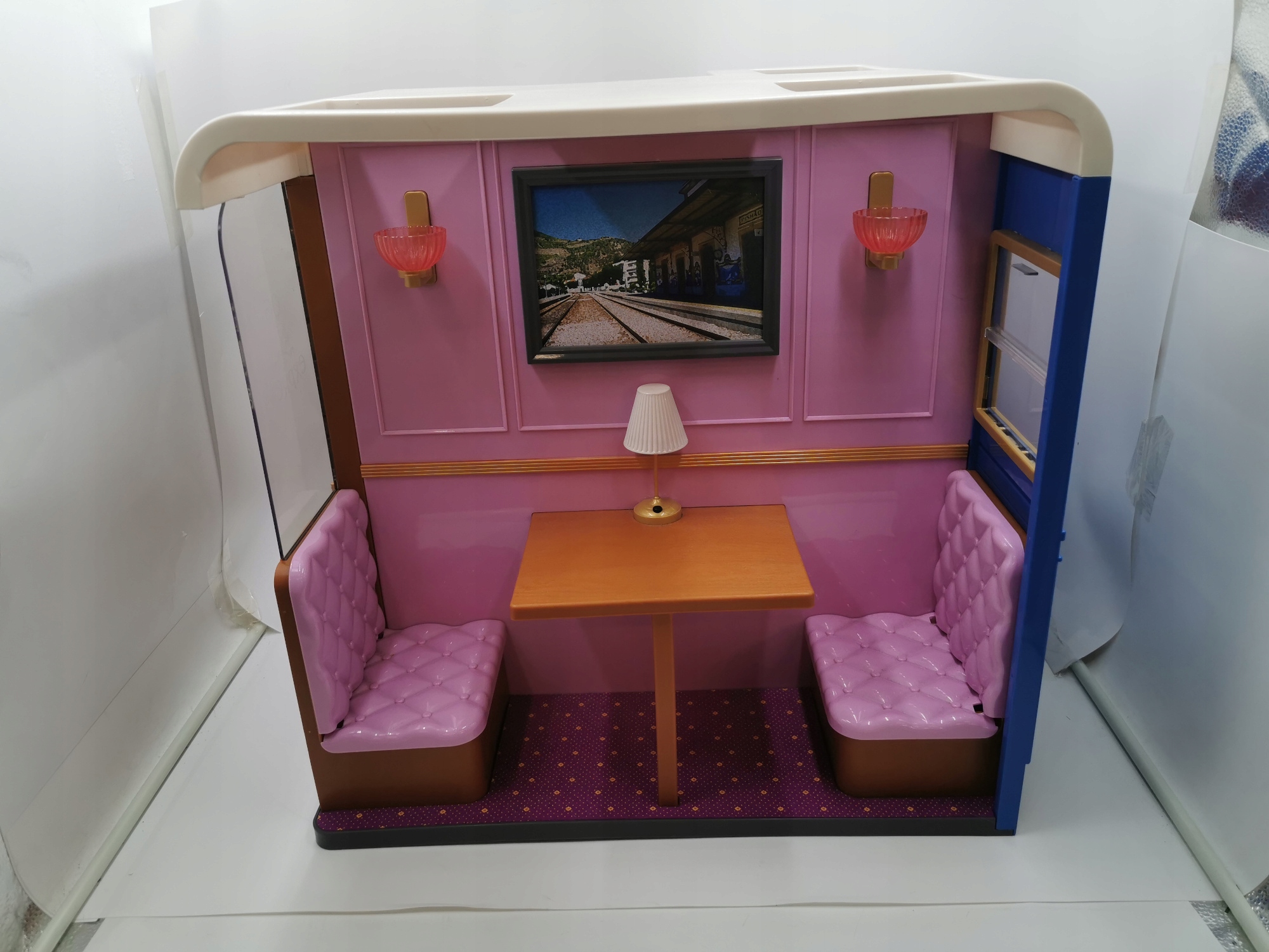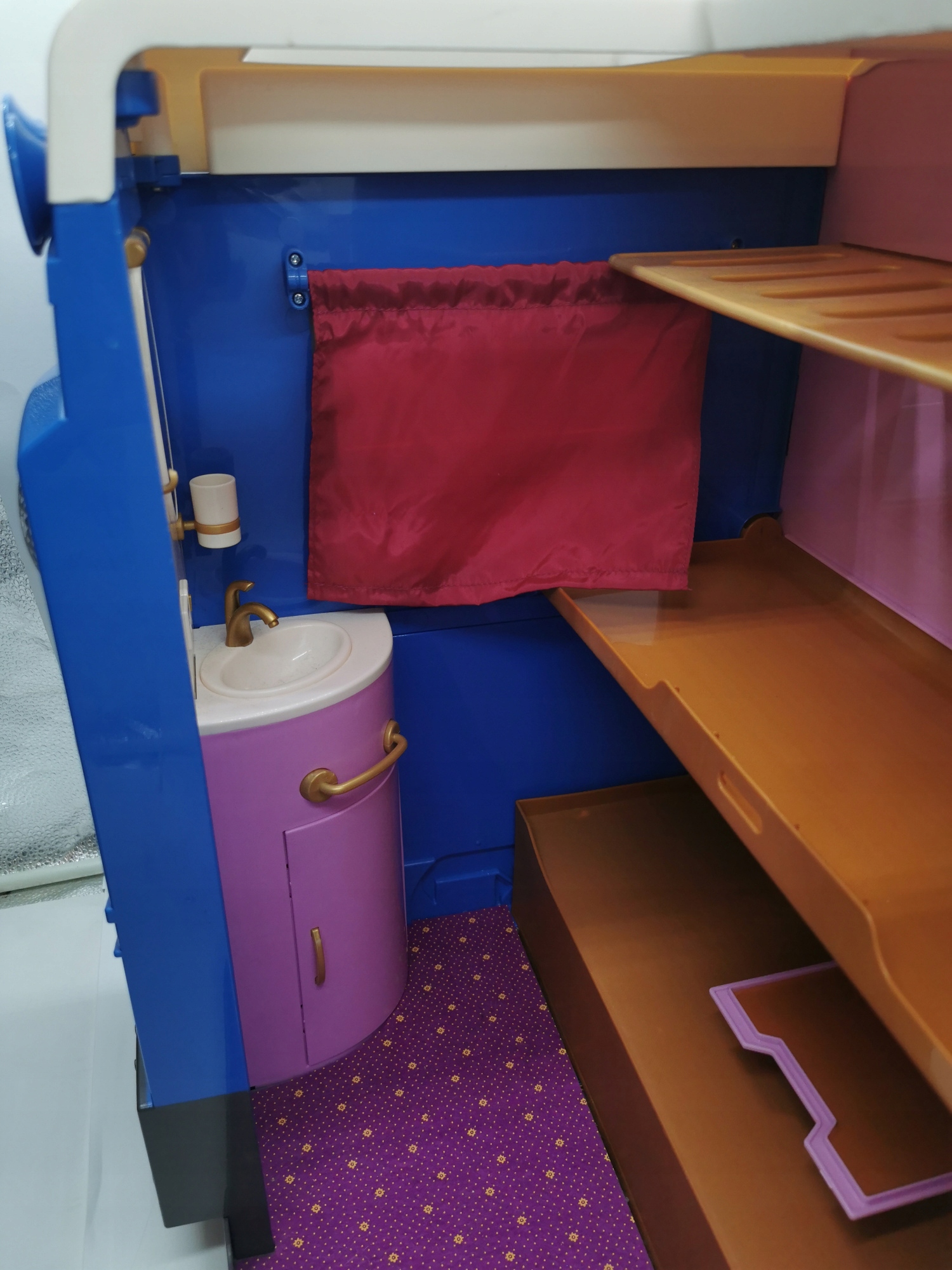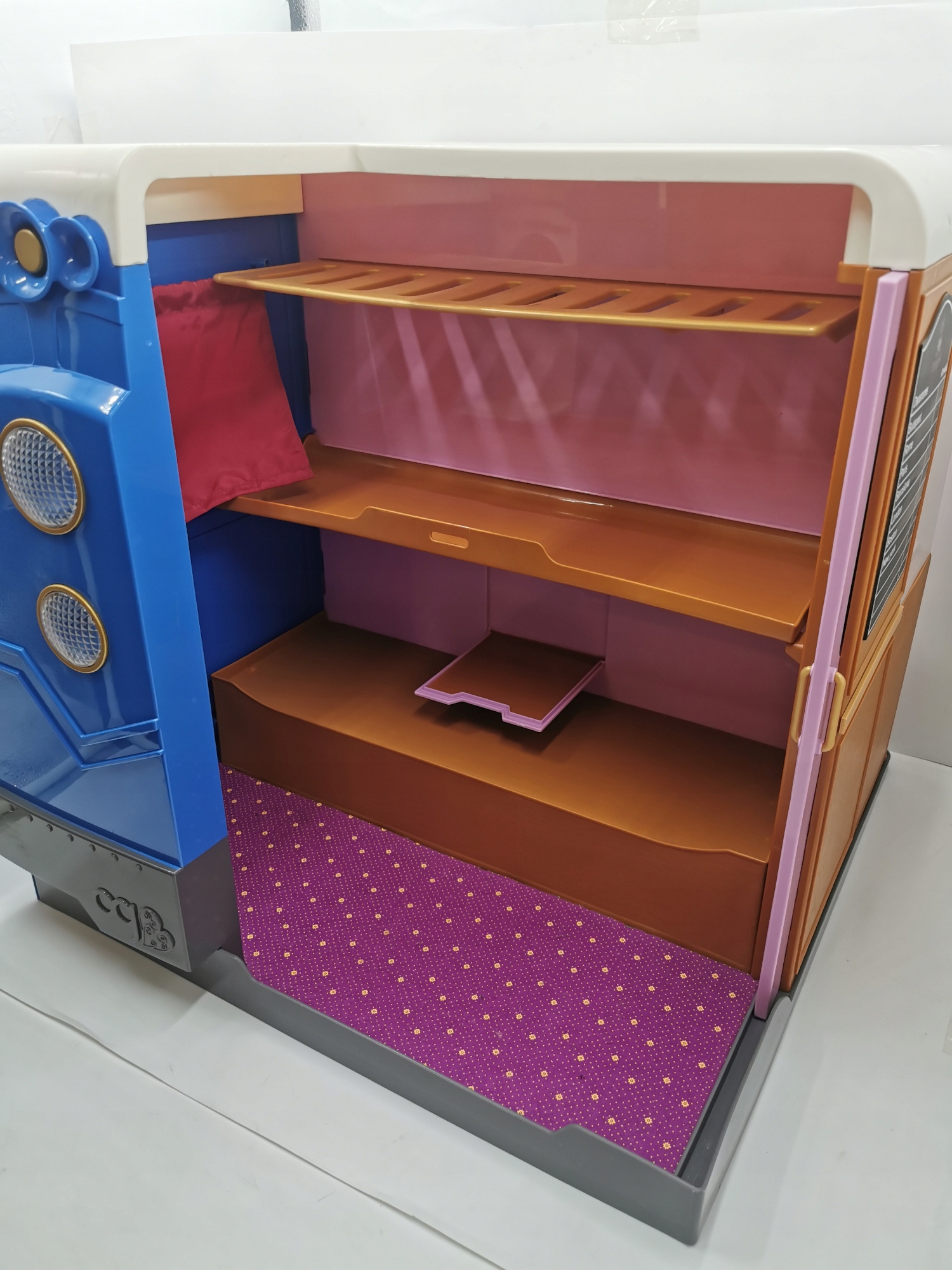 С одной стороны спальная зона с умывальником и местом для двух кукол, а с другой - Ресторанная зона – со столом и продуманными отделениями для хранения аксессуаров. Место, где можно поесть и поспать, а также приятно пообщаться.