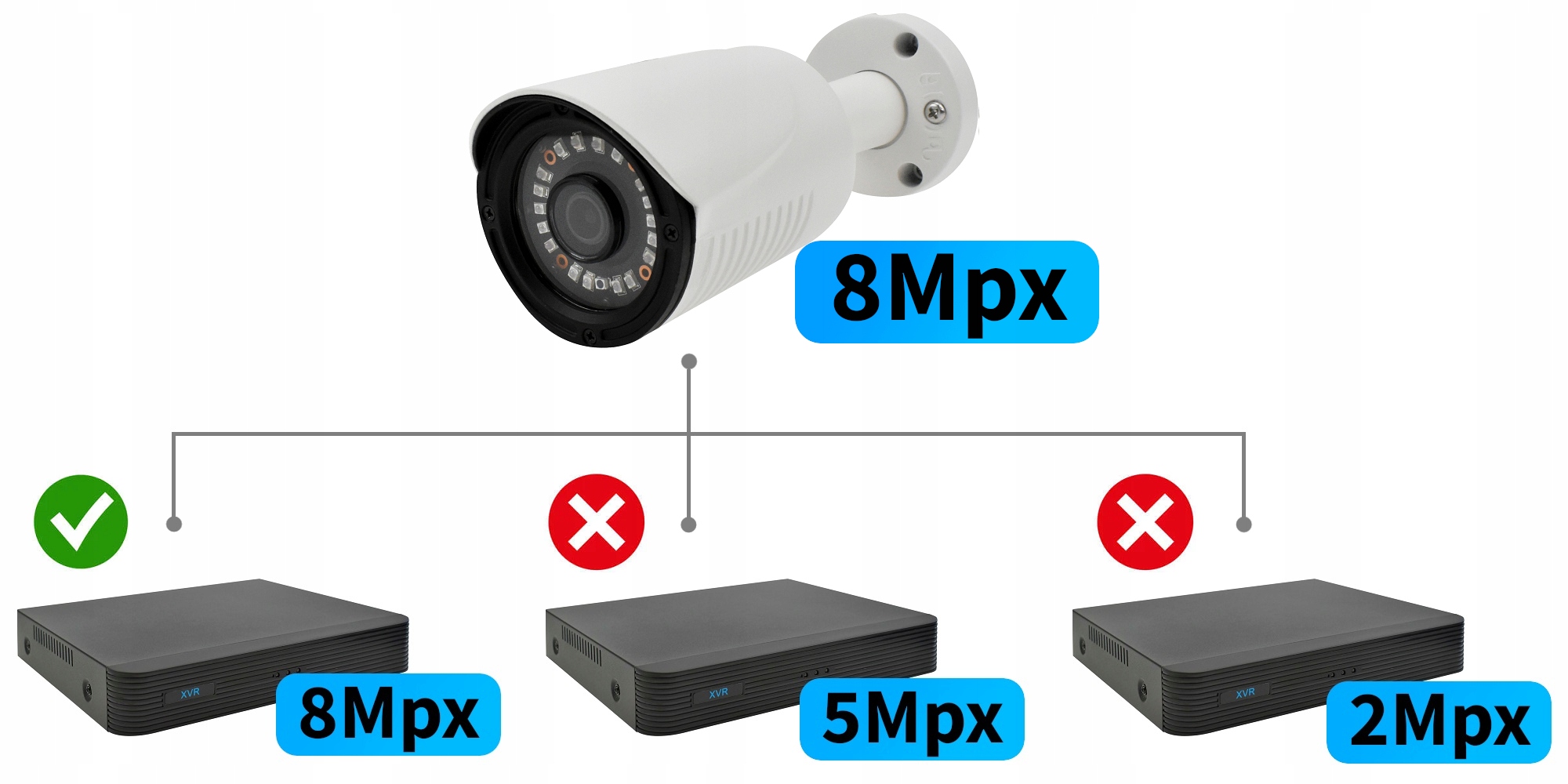 ВНИМАНИЕ! Камера не будет работать автономно! Перед покупкой убедитесь, что ваш рекордер поддерживает камеры данного типа с разрешением 8 мегапикселей.