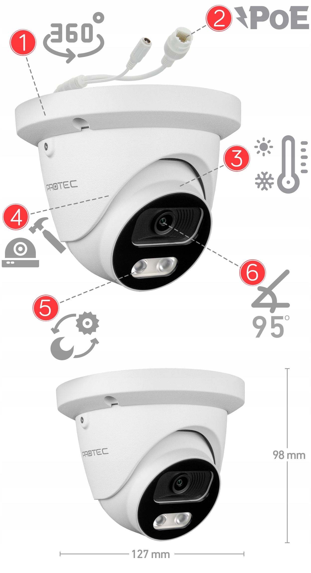 5. Инфракрасный свет невидим для человеческого глаза, в то время как камеры имеют подходящий фильтр, который позволяет наблюдать в таких условиях. Благодаря этому камера может работать эффективно весь день и ночь.