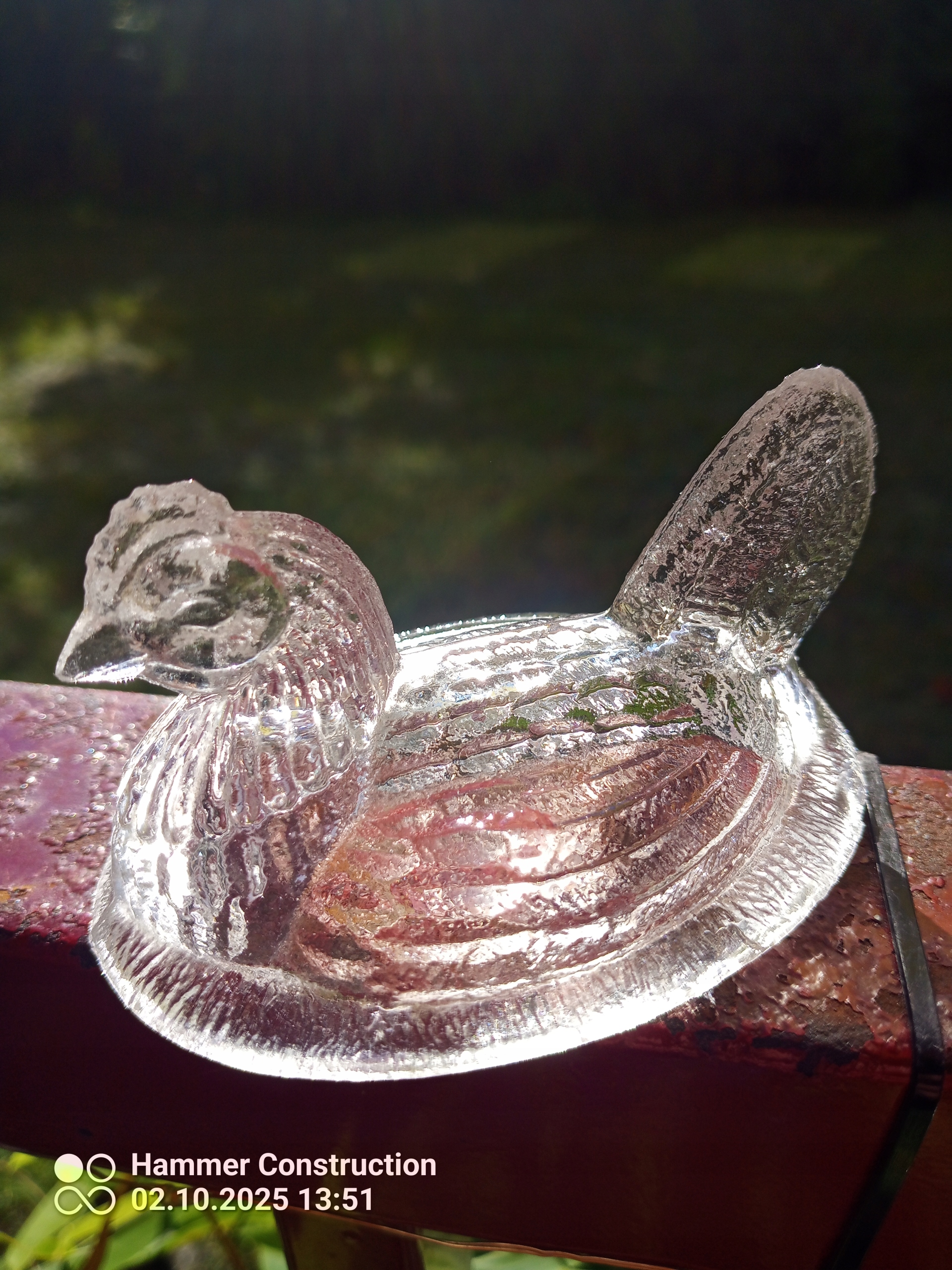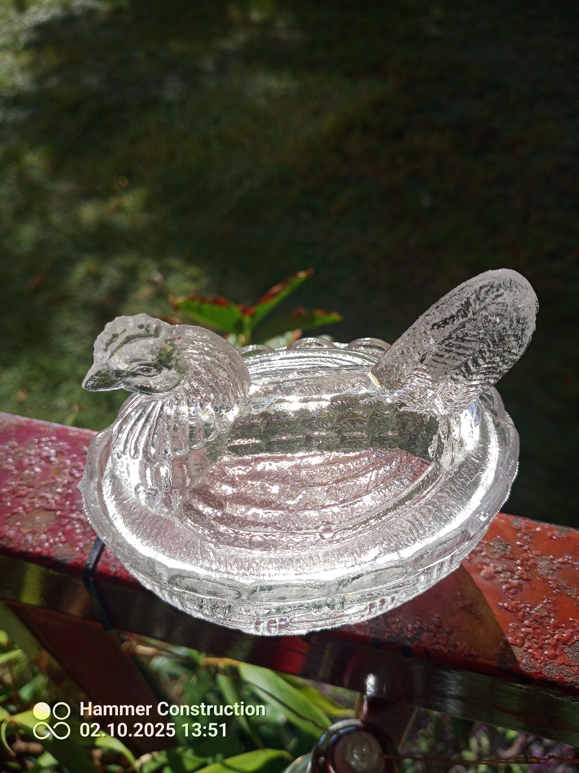 Коробка/контейнер для шоколада в форме курицы производства HSG Ząbkowice. Прессованное толстостенное прозрачное стекло. зеркало.