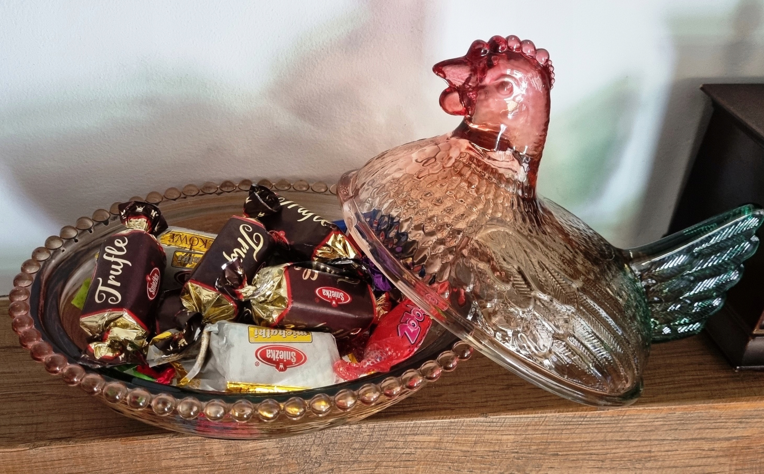 Стеклянная ваза Кура, сахарница разноцветная, 17 х 13 х 13 см.