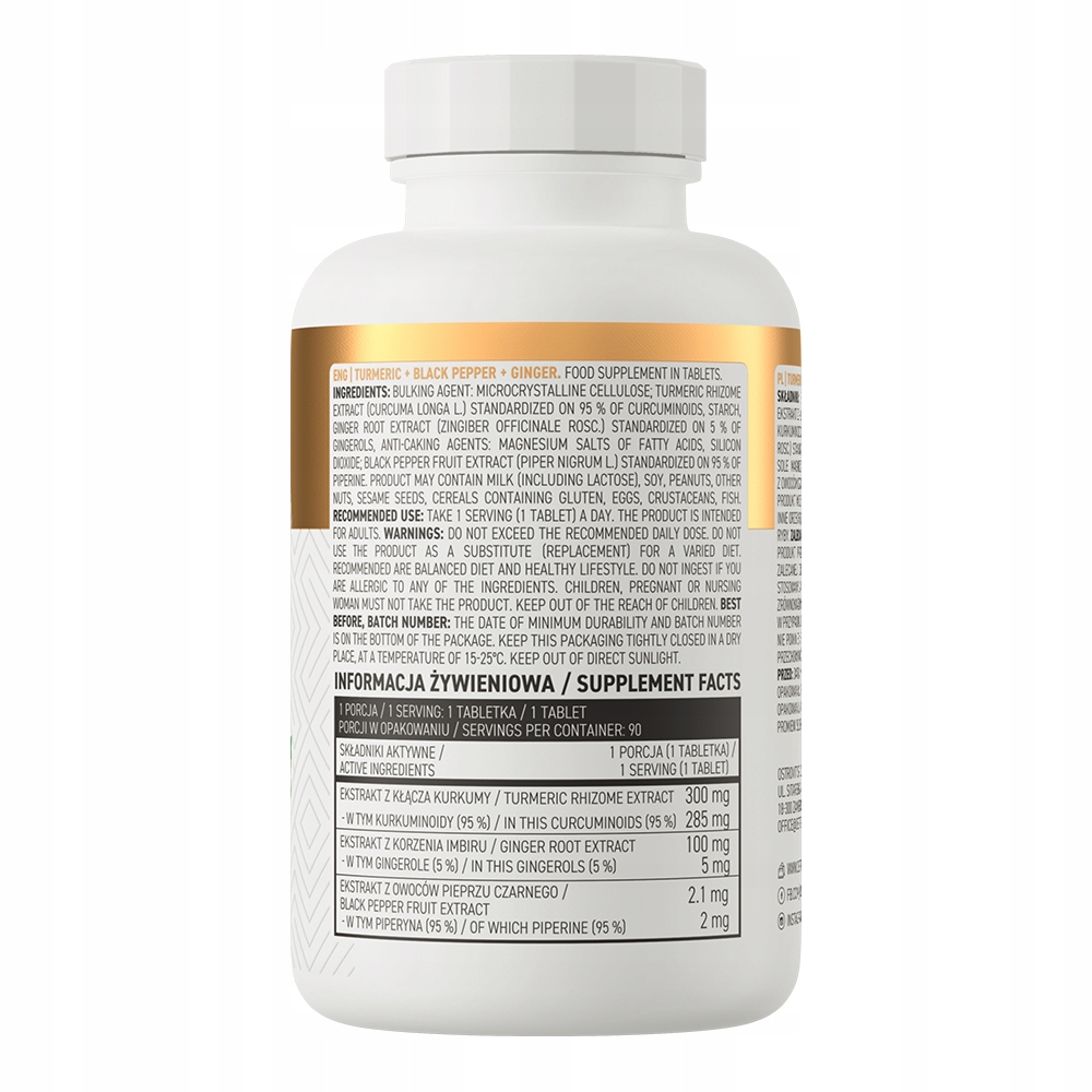 OstroVit Куркумин + Черный перец + Имбирь – это пищевая добавка, являющаяся источником трех растительных экстрактов. Этот препарат доступен в форме удобных для глотания таблеток, созданных для людей, которые хотят дополнить свой ежедневный рацион ценными соединениями.