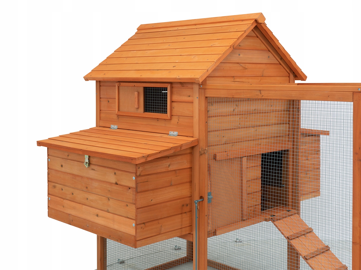 Это красивый, а главное продуманный курятник, предлагающий животным полный комфорт и свободу. Стабильная конструкция и многофункциональность курятника/клетки делают нас владельцами прекрасного дома для наших животных. Благодаря большому вольеру за животными можно наблюдать со всех сторон и они всегда имеют доступ к солнечному свету и свежему воздуху. Два боковых скворечника с крышками обеспечивают курам много места и легкий доступ к свежим яйцам.