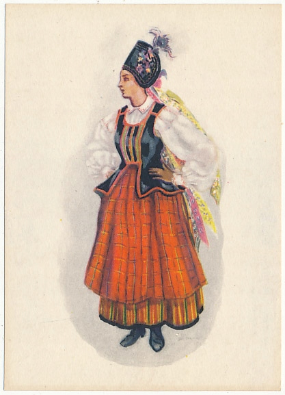 Kurpie Myszyniec strój folklor mal. Wąsowicz-Sopoć